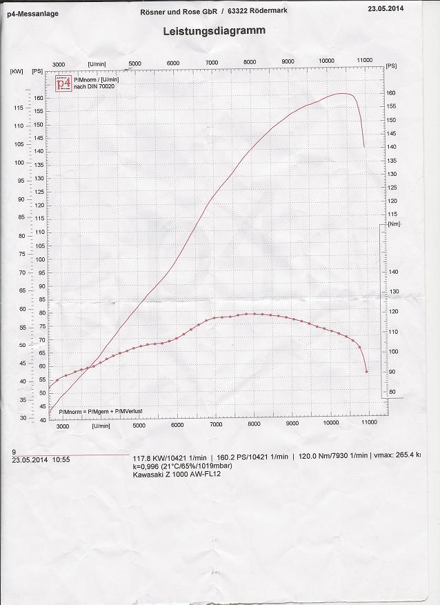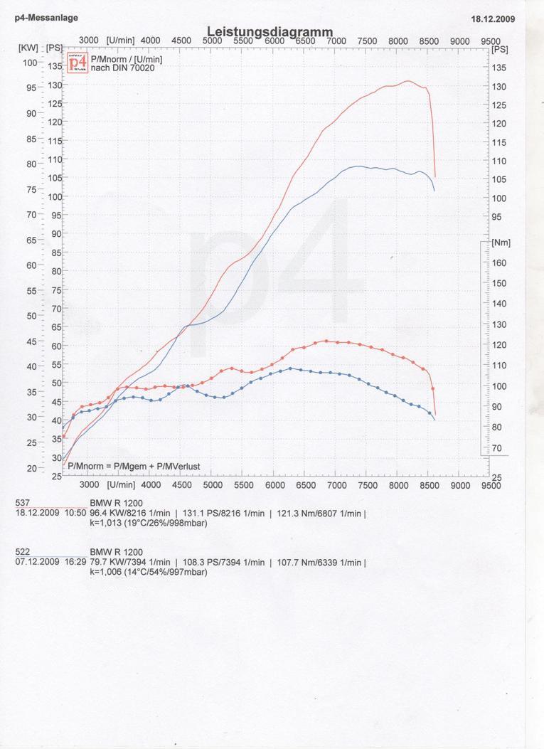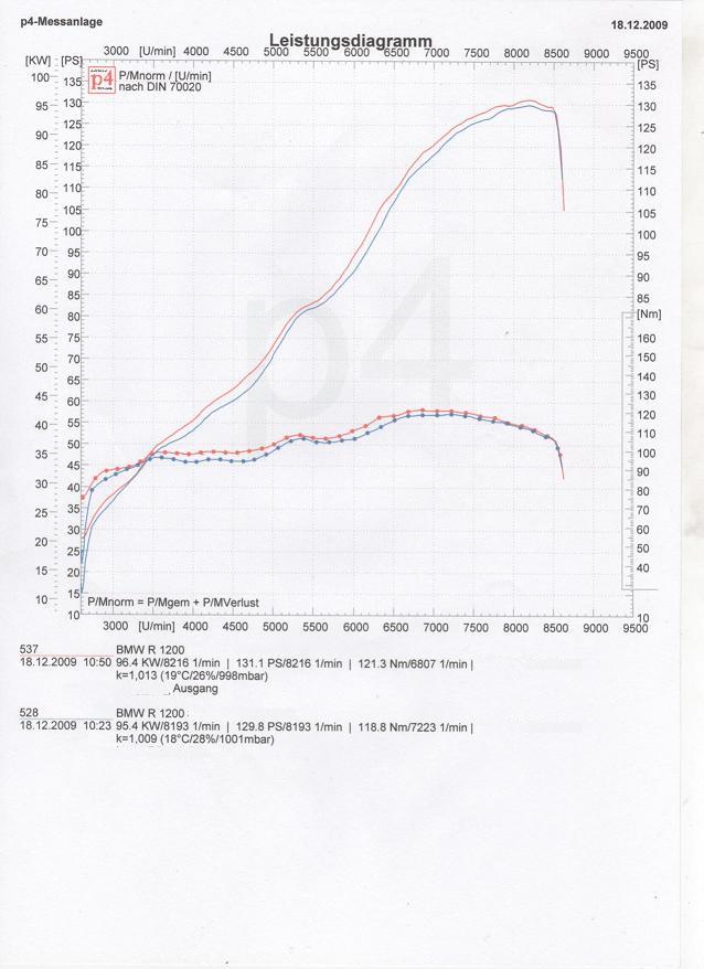 Ausgangsmessung mit Kolben der 2008 er, Boxerburner (Ansaugtrichter in der umgebauten Airbox) aktualisierte (für dieses Modell und Konfiguration best funktionierende Werks SW) und Abstimmung.