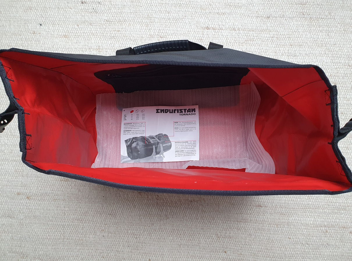 Neue und sehr gut – typisch Enduristan – verarbeitete Rolltasche von Enduristan, die Tornado S2 in schwarz; Angaben laut Hersteller: