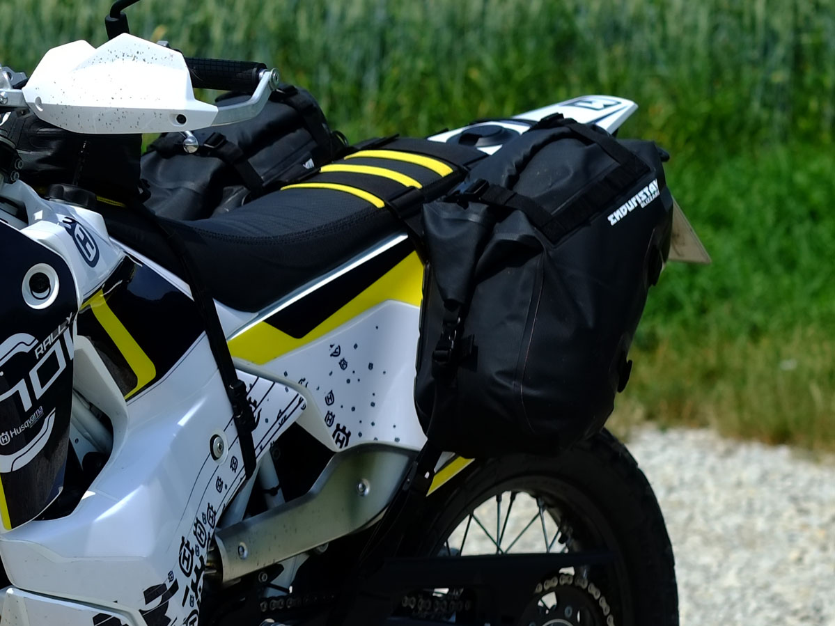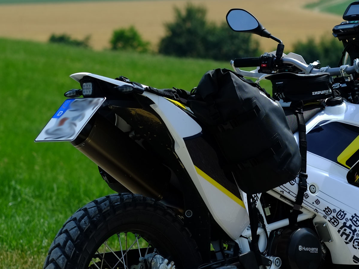 Die Taschen sind 100%ig wasserdicht und passen hervorragend an jede Enduro.