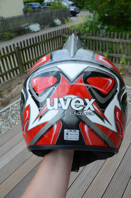 - einen etwa 5x getragen Uvex-Endurohelm Gr. S (55/56). Der Helm kann mit Visier oder Brille gefahren erden - Visier ist dabei. Der Helm ist etwa 2,5 Jahre alt und in einem guten Zustand.