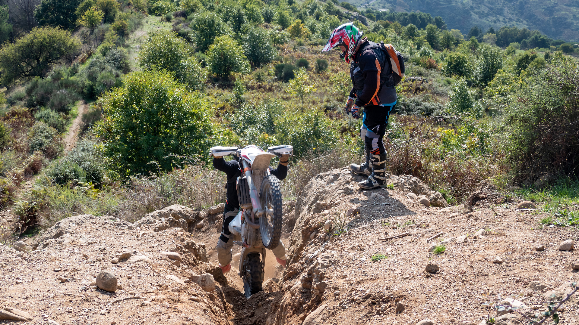 Nach einer gefühlten Ewigkeit habe ich endlich mal wieder einen richtigen Motorradurlaub gemacht. Ich war vergangene Woche in Sizilien und bin bei bestem Wetter vier Tage Enduro gefahren. Unser Basislager war ein Hotel in der Nähe von Taormina an der Ostküste etwa auf Höhe des Ätna. Wir hatten 2020er KTM Enduros (350er und 450er) und sind wirklich sensationelle Strecken gefahren. Das war mein fünfter Urlaub dieser Art und ich habe mich innerhalb von zwei Jahren vom blutigen Anfänger (blutig im übertragenen wie auch im wörtlichen Sinne) zum Teilnehmer in der „Sportfahrergruppe“ gemausert. Das ist natürlich erfreulich und sehr motivierend, aber ich musste mich etwa ein Drittel der Zeit schon ganz schön strecken, um die Hänge hochzukommen und die Hindernisse zu überwinden. Erholsam war die Woche also nicht. Aber ausruhen kann ich mich ja im Büro.