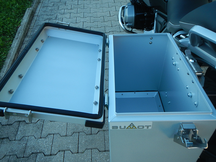 Ich habe mich aufgrund der Produktbeschreibung für die Discoverer entschieden!Die Lieferung erfolgte sehr schnell und die Koffer bzw. die Kofferträger waren in 2 Kartons sehr gut verpackt. Beim Auspacken des Kofferträgers war weder eine Stückliste noch eine Anbau-Anleitung vorhanden! Auf der WEB-Seite konnte ich keine Anbau-Anleitung in Papierform finden bzw. herunterladen! O.K. es gibt ja das Anbau-Video und so musste ich zwischen PC und Werkstatt immer hin und her pendeln....ärgerlich! Auf der linken Seite klappte der Anbau problemlos und war sehr schnell erledigt. Auf der rechten (Auspuffseite) gestaltete sich das doch schwieriger! Hier zeigt das Video einen Zubehörauspuff und beim Original passte die Anleitung überhaupt nicht! Man konnte die Fussrasterhalterung mit einer Standard T40 Nuss und Ratsche nicht öffen, da schlichtweg kein Platz war um den Torx anzusetzen bzw. die Schrauben mit einer Schraubensicherung versehen waren und mit einem Winkeltorx nicht zu öffen! Also musste zuerst der Auspuff abgebaut werden! Nun klappte der Anbau des Trägers, aber der Auspuff konnte an der Halterung nicht mehr festgeschraubt werden, da die Strebe des Trägers im Weg war und hier die Torx-Nuss wieder nicht angesetzt werden konnte! Also Fussrastenhalterung nochmal lockern, sodass man den Auspuff wieder festschrauben kann. Mit montiertem Auspuff konnte ich aber mit dem T 40 die Rastenhalterung nicht festschrauben, da kein Platz für die Nuss war (wie oben bei der Demontage) Mit einem kleinen Torxwinkel habe ich dann mm-Weise die Schrauben eingedreht, dass war sehr ärgerlich und umständlich! Der gesamte Träger passte dann sehr gut und war spannungsfrei verbaut. Die Optik der Vierkanntflacheisen des Trägers ist schon arg gewöhnungsbedürftig! Die Passgenauigkeit, Verarbeitung und Bedienung der Koffer ist sehr gut! Der Verschlussmechanismus scheint sehr stabil zu sein und auch die Scharniere sind von guter Qualität. Auch kann ich die Deckel problemlos öffnen wenn ein Topcase (Trekker 52) montiert ist. Alles in allem eine runde Sache aber dann kam der erste Regen: