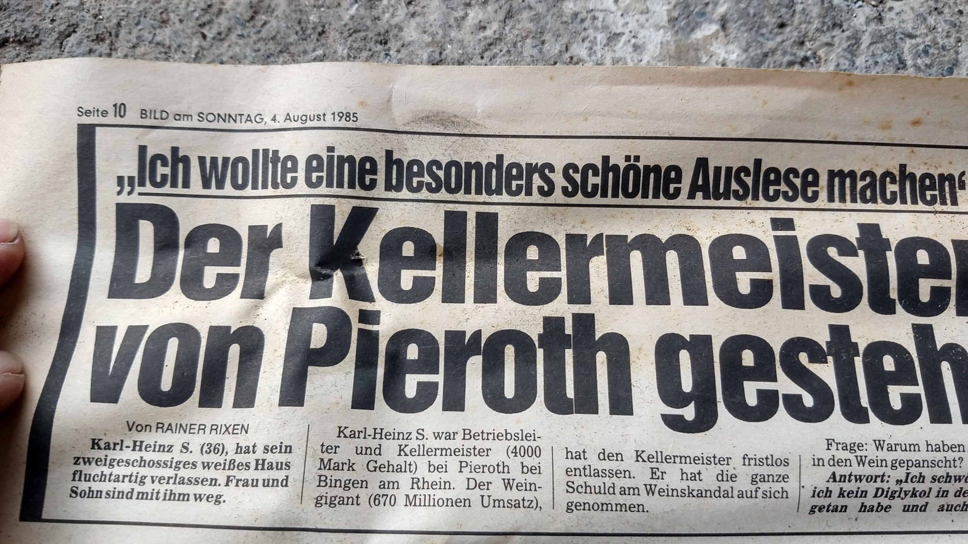 Und die Schlagzeilen der alten Zeitung passen zum Glykolskandal