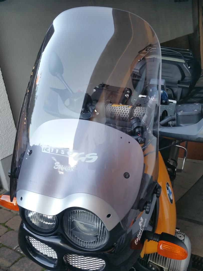 Ermax Windschild für BMW R1150GS, Zustand und Lieferumfang siehe Fotos, nur die Scheibe mit Halterungen, die Befestigungsschrauben gehören nicht dazu. Normale Gebrauchspuren, keine Kratzer oder Risse, aber eben gebraucht, bitte keine Erbenzähler die neues zum Gebrauchtpreis wollen, sorry muss ich leider so schreiben.