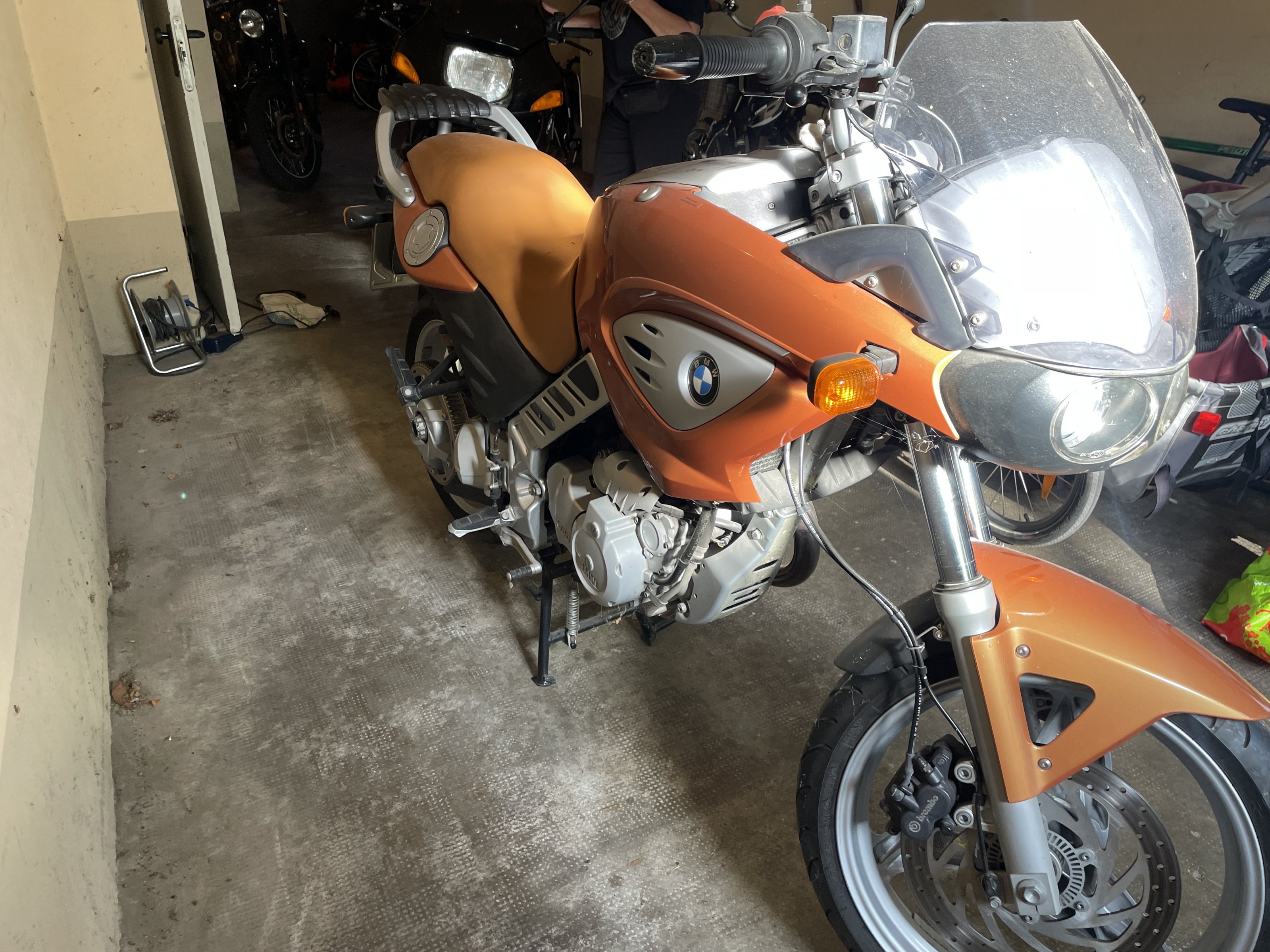 Die F 650 Scarver ist Bj 2002 und hat 17772 km runter. Sie möchte gern noch 1100.-€ dafür haben.