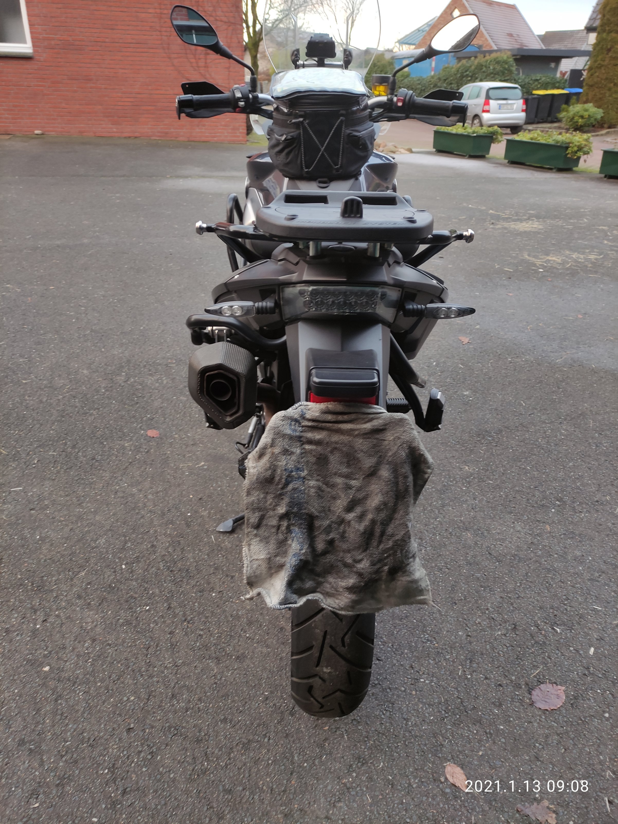 kleiner Kratzer im Bereich unterhalb des Tankrucksacks, nicht sichtbar wenn der Tankrucksack montiert ist.
