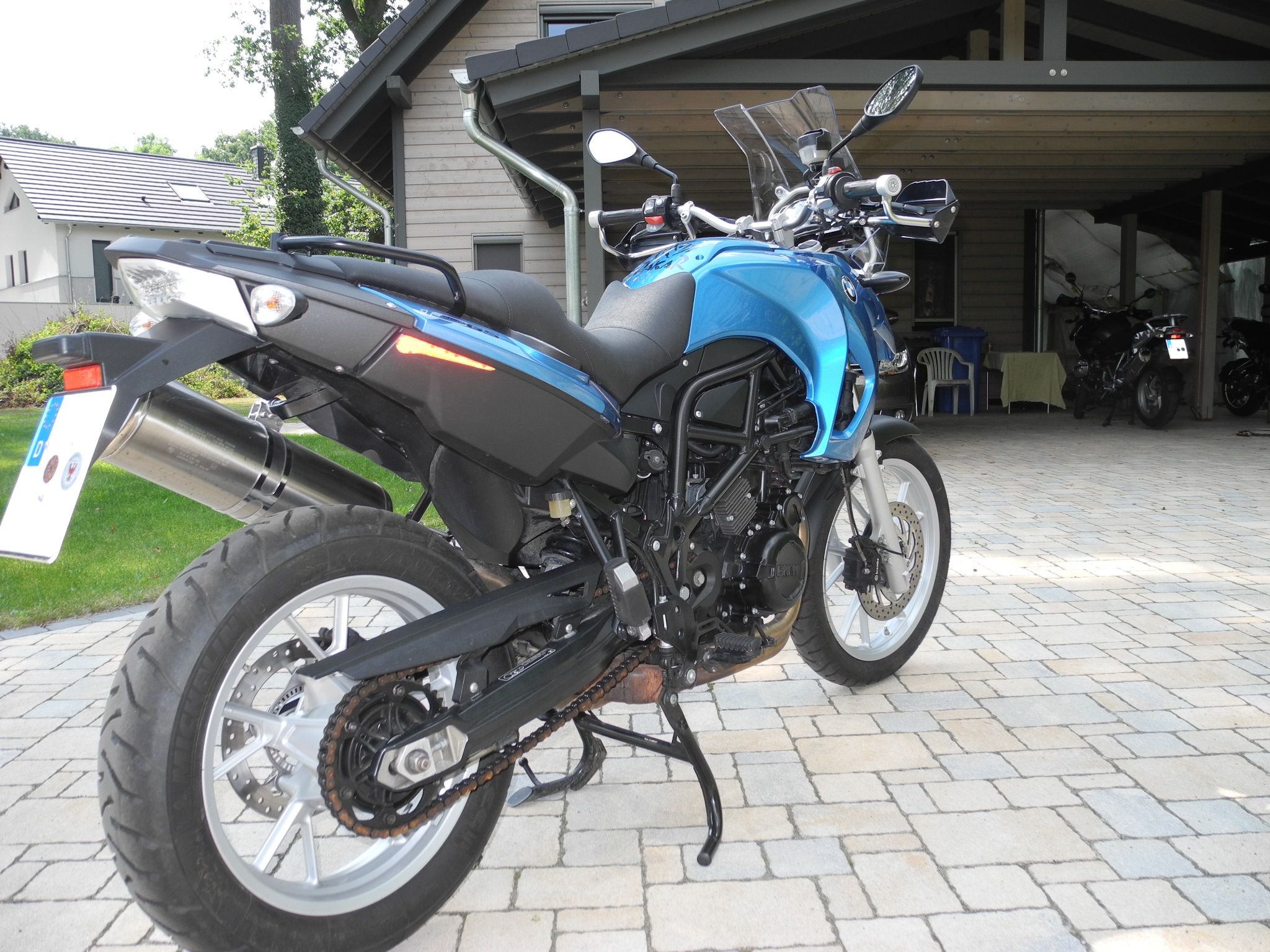 Sie hat mich in den letzten 1,5 Jahren 11tkm treu durch Land begleitet, besonders bequem durch eine, vom Sattler aufgepolsterte Sitzbank. Sie hat einen Öler von CLS (mit CLS Control Display) und das große Touring-Windschild, sowie Handprotektoren mit Spoiler.