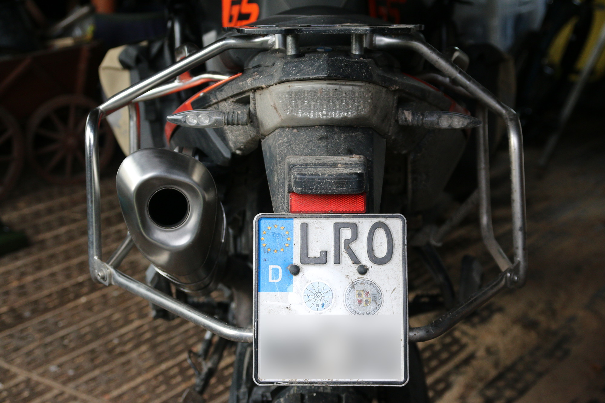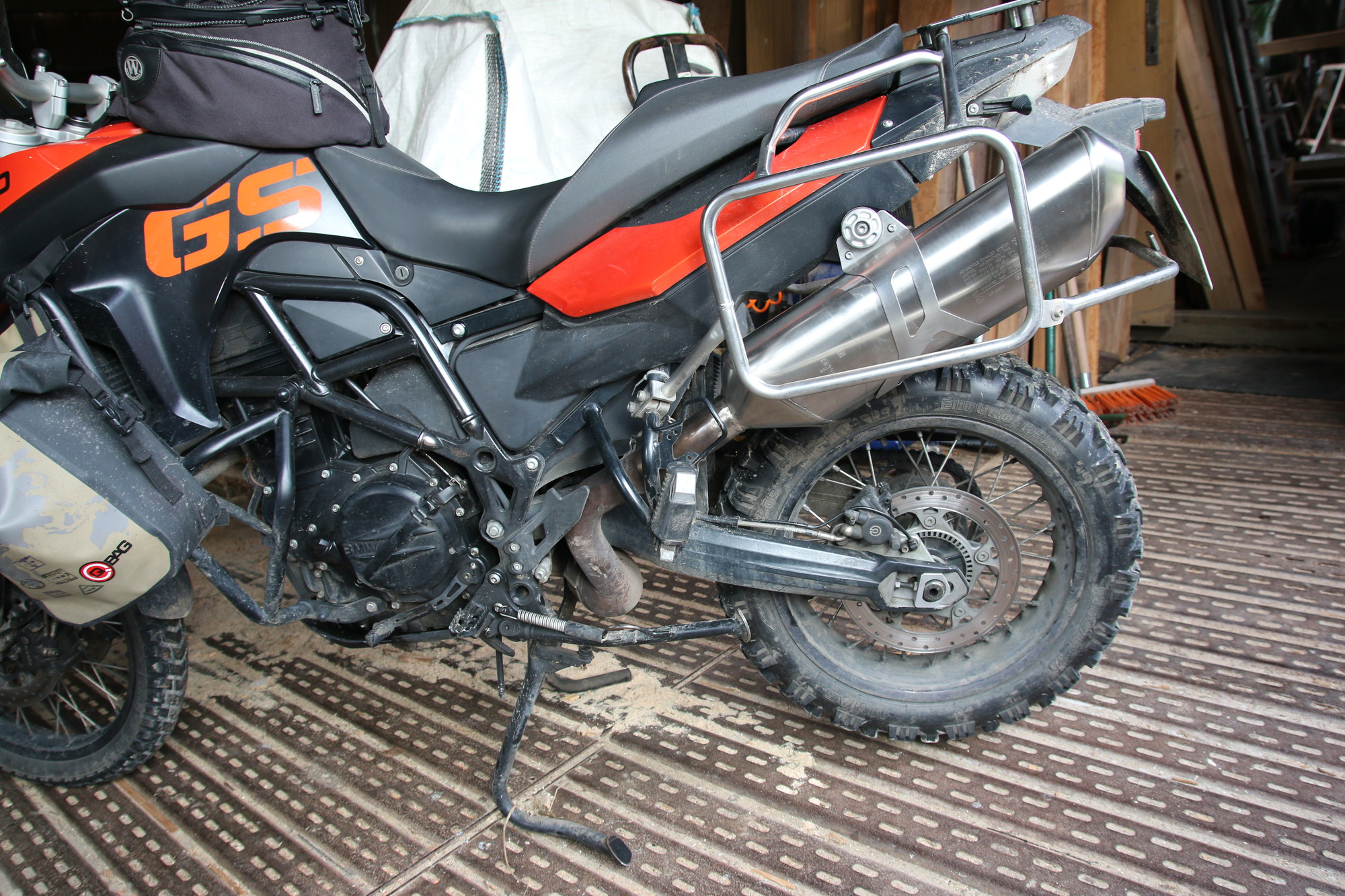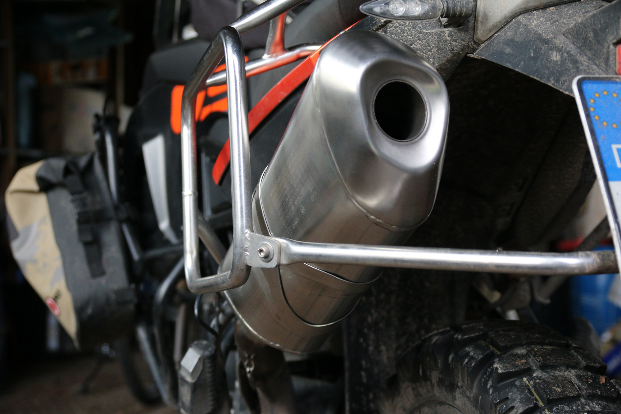 Details: Slip-on Stutzen vom 800er ESD wurde passend an den 850er Topf gesetzt und die Halterung so umgebaut, dass sie plug'n'play an die F800GS passt.