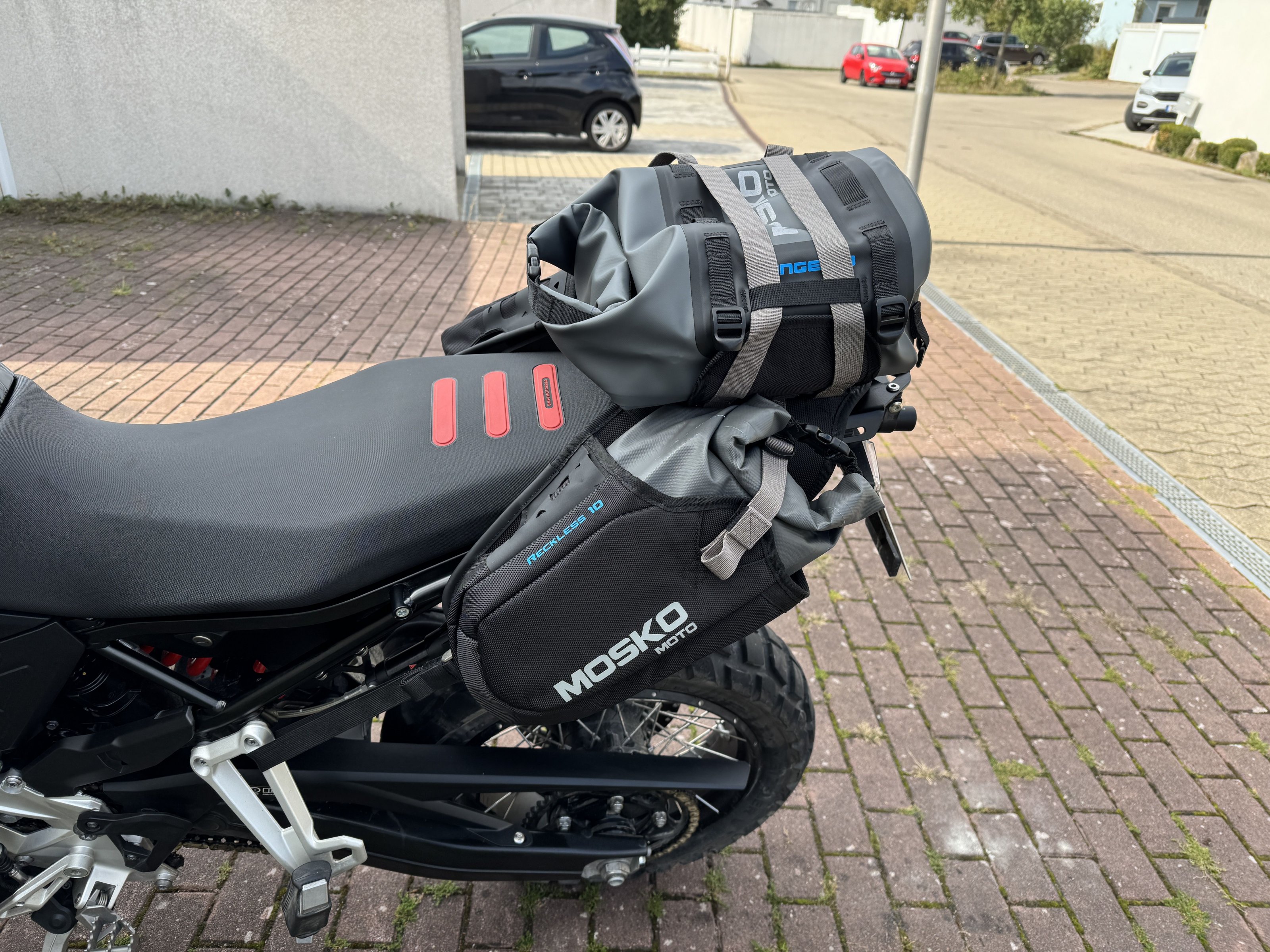 obwohl ich ja zuerst auf den Kriega-Trip war und eigentlich warten wollte bis Kriega eine Base auf den Markt bringt, habe ich mich nun dazu entschieden auf MoskoMoto zu gehen. Habe mich für die R40 Variante mit 22L Stinger entschieden. Bin mit diesem Setup aktuell im Urlaub und bin wirklich zufrieden. Ich habe keinerlei Angst irgendwelche Schlaufen oder Bänder zu fest zu ziehen und sie dadurch abzureißen. Die Taschen, bzw. das System ist echt super.