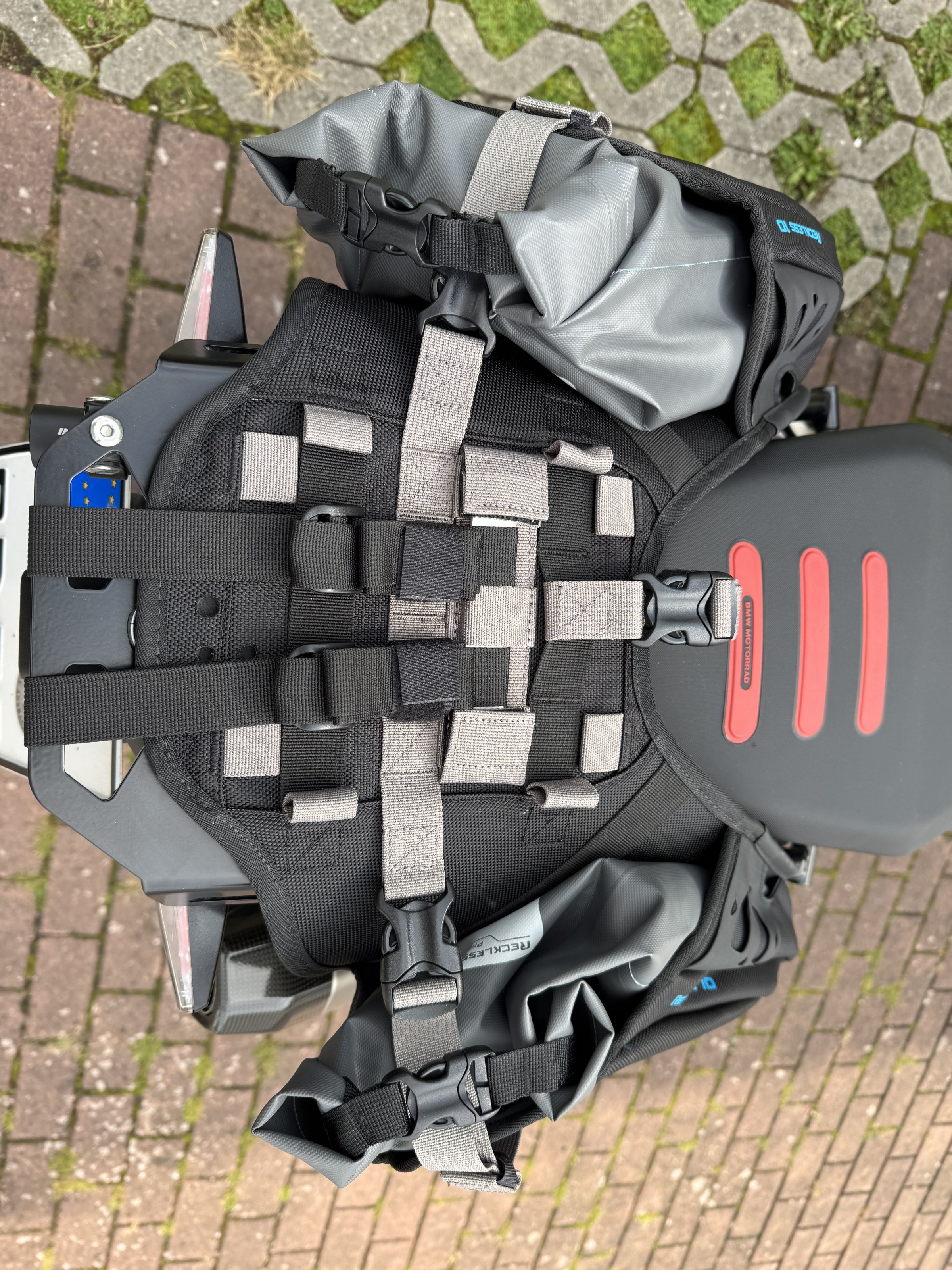 Hab es noch mit einem weiteren Drybag und Gepäcknetz erweitert.