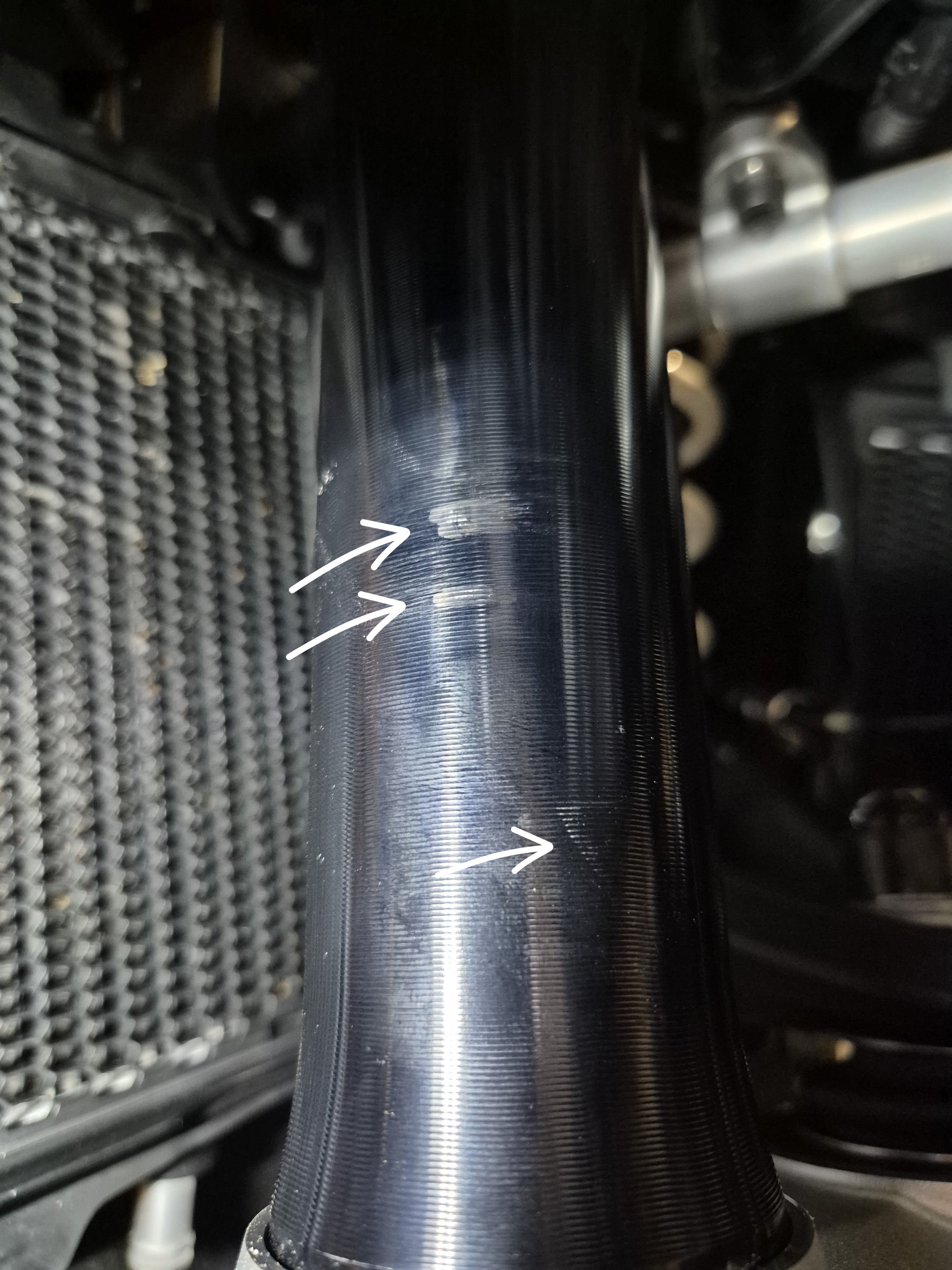 Abgesehen davon, das da die Werkstatt wirklich Murks abgeliefert hat ist mir was anderes ins Auge gefallen. Die Gabelruhe machen von der Oberfläche her einen ziemlich riefigen Eindruck ab werk. Was meinen die anderen dazu?