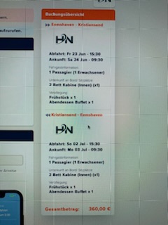 Auf jeden Fall schon mal ein herzliches Dankeschön für den Tipp!Wenn Du magst, kannst Du die gleiche Buchungsanfrage mal bei directferries.de ansetzen. Komischerweise immer günstiger... Hat bei uns leider nicht geklappt. Da lag aber wohl ein Softwarefehler bei der Reederei vor.