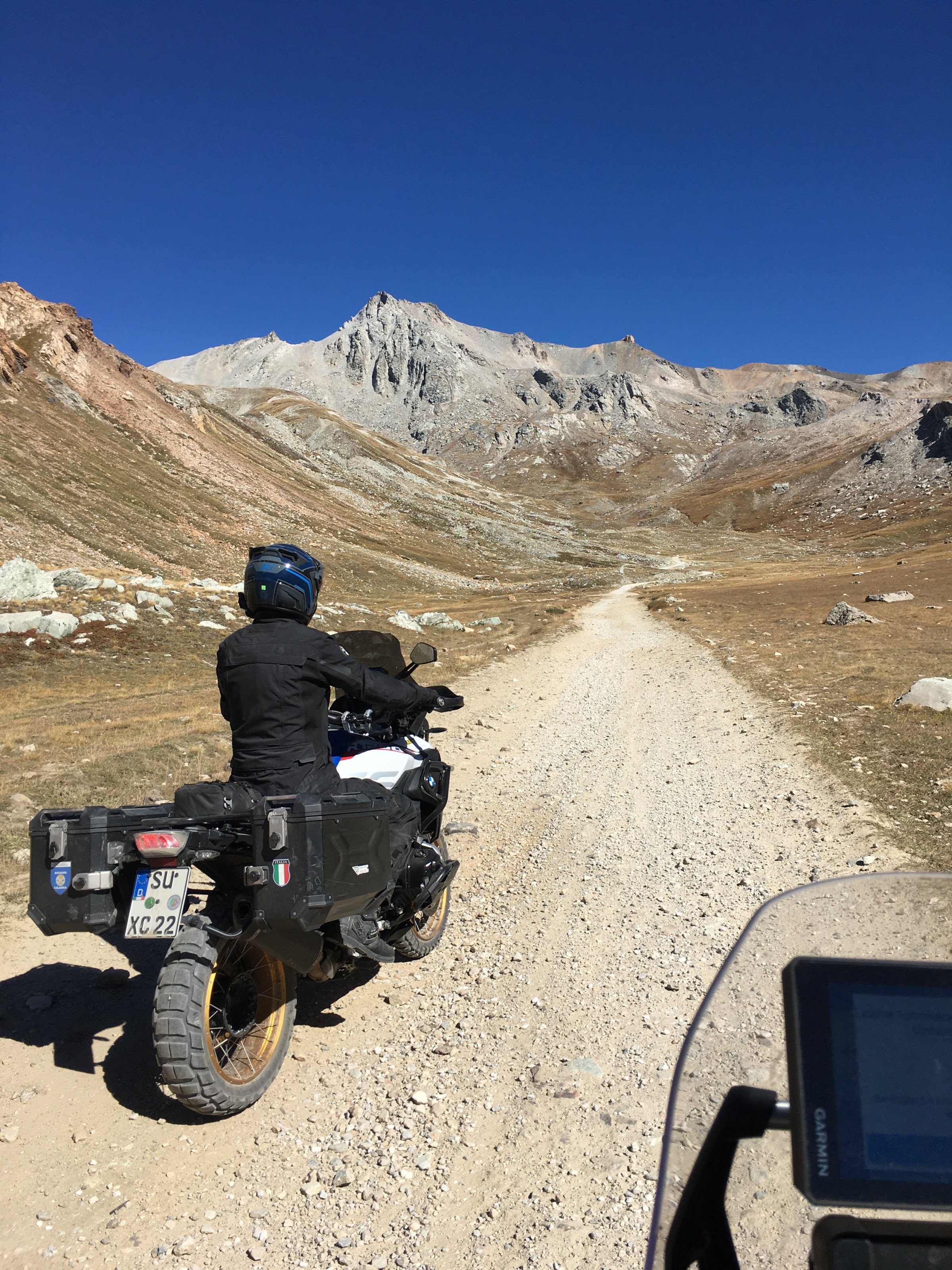 Praxisgerecht, wenn man so wie wir alle paar Kilometer von befestigten Straßen "ab kommt", haben Sie von Metzeler den Reifendruck bei der R 1250 GSA auf 2.0/2.1 eingestellt.