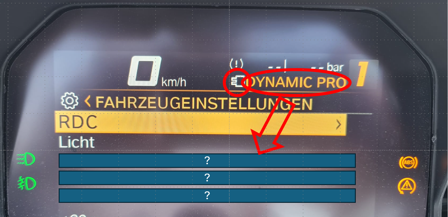 Den Codierstecker, wohl die ganze Zeit unbenutzt habe ich auch unter dem Fahrersitz gefunden und eingesteckt, was man auch am entsprechenden Symbol im TFT erkennt. Trotzdem finde ich im Menü unter Einstellung nur die RDC und Licht!