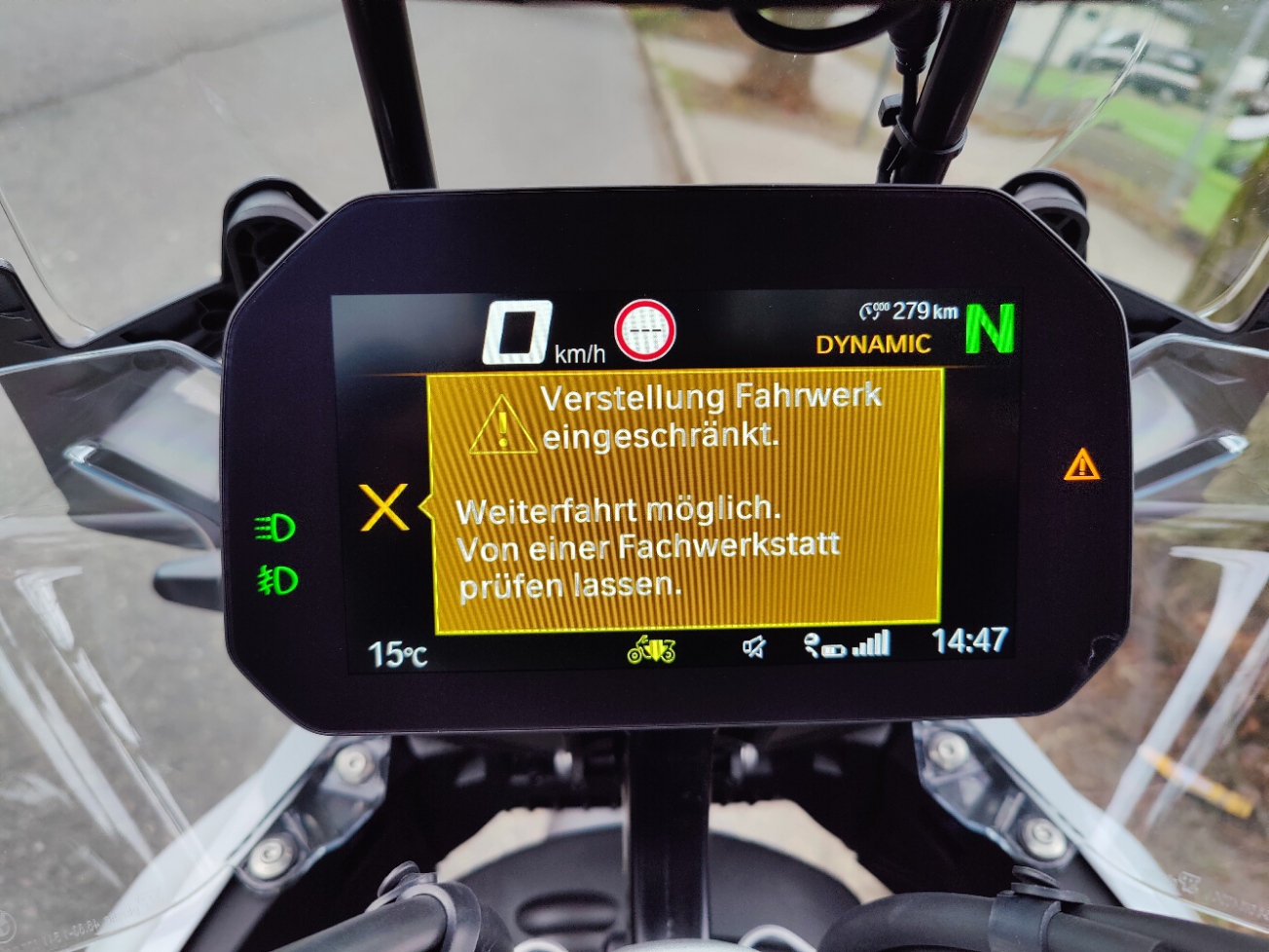 Nachtrag: bisher haben sich hier fünf User gemeldet. Bei drei von diesen fünf deute ich deren Aussage so als ob es dort "nur" um die Fehlermeldung im TFT geht und diese nach einem Neustart wieder weg war. (?) Bleiben zwei übrig dessen Motorrad "mechanisch" behandelt werden muss.