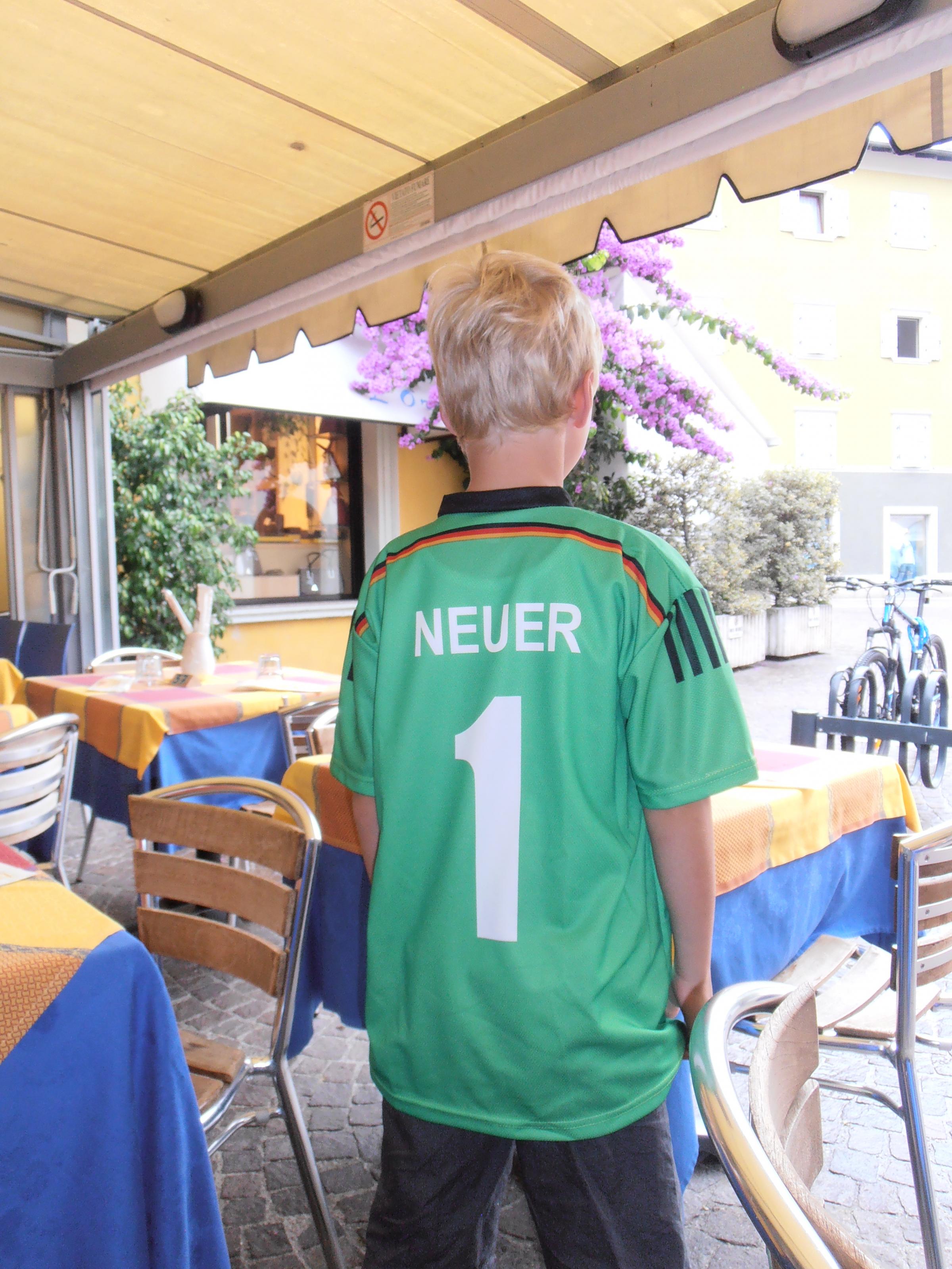 Noah (mein Sohn) ich habe da ein ganz tolles Trikot von Manuel Neuer gesehen (mein Sohn spielt auch im Tor) wenn wir das kaufen dann wird Deutschland Weltmeister.
