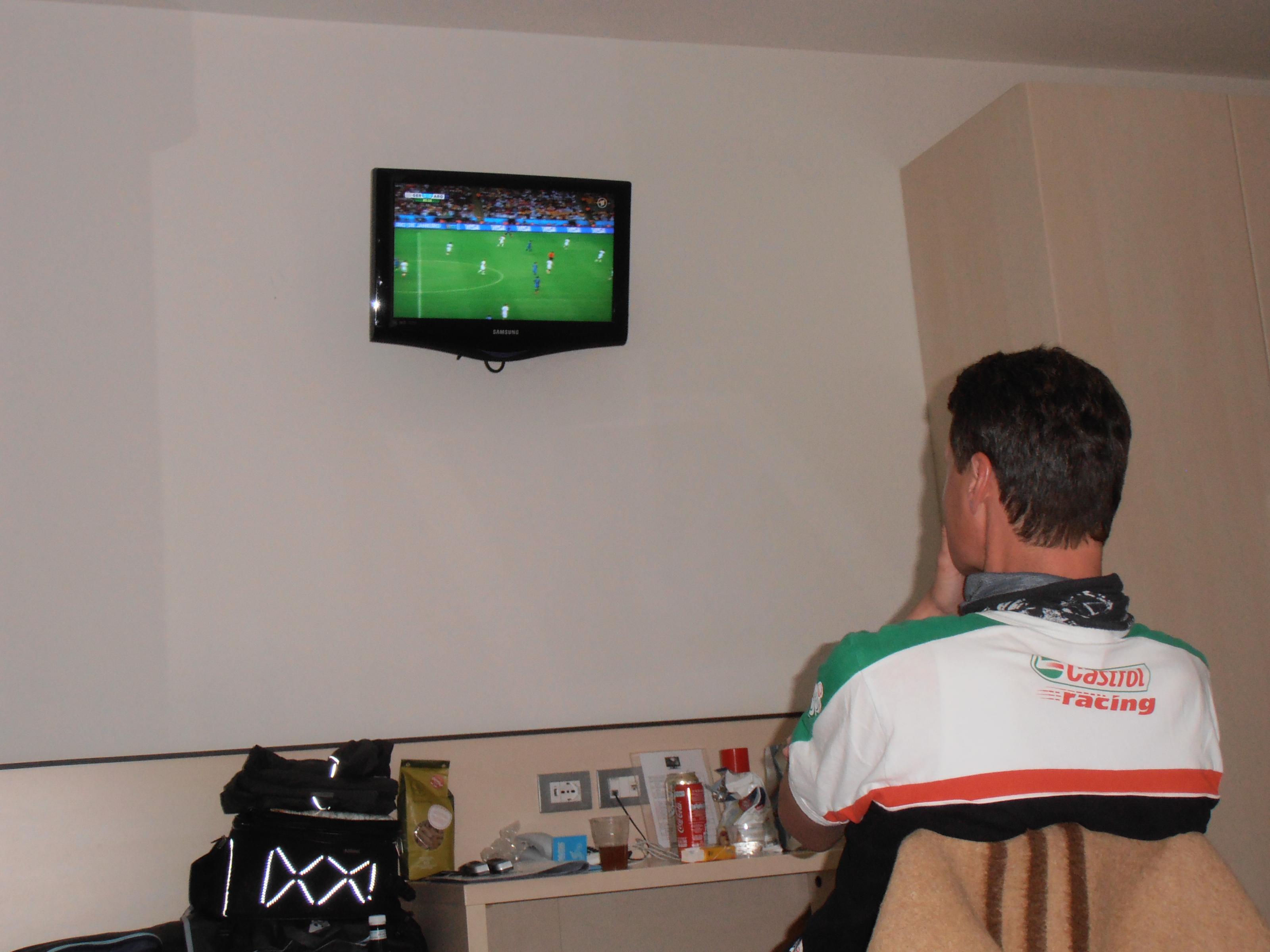 Pünktlich nach dem Duschen fing es an zu regnen, also wollten wir nicht zu weit zu einer Pizzeria laufen und wir hatten Glück, direkt um die Ecke gab es noch freie Plätze, es wurden sogar die Halbfinalspiele auf einer Großleinwand gezeigt.