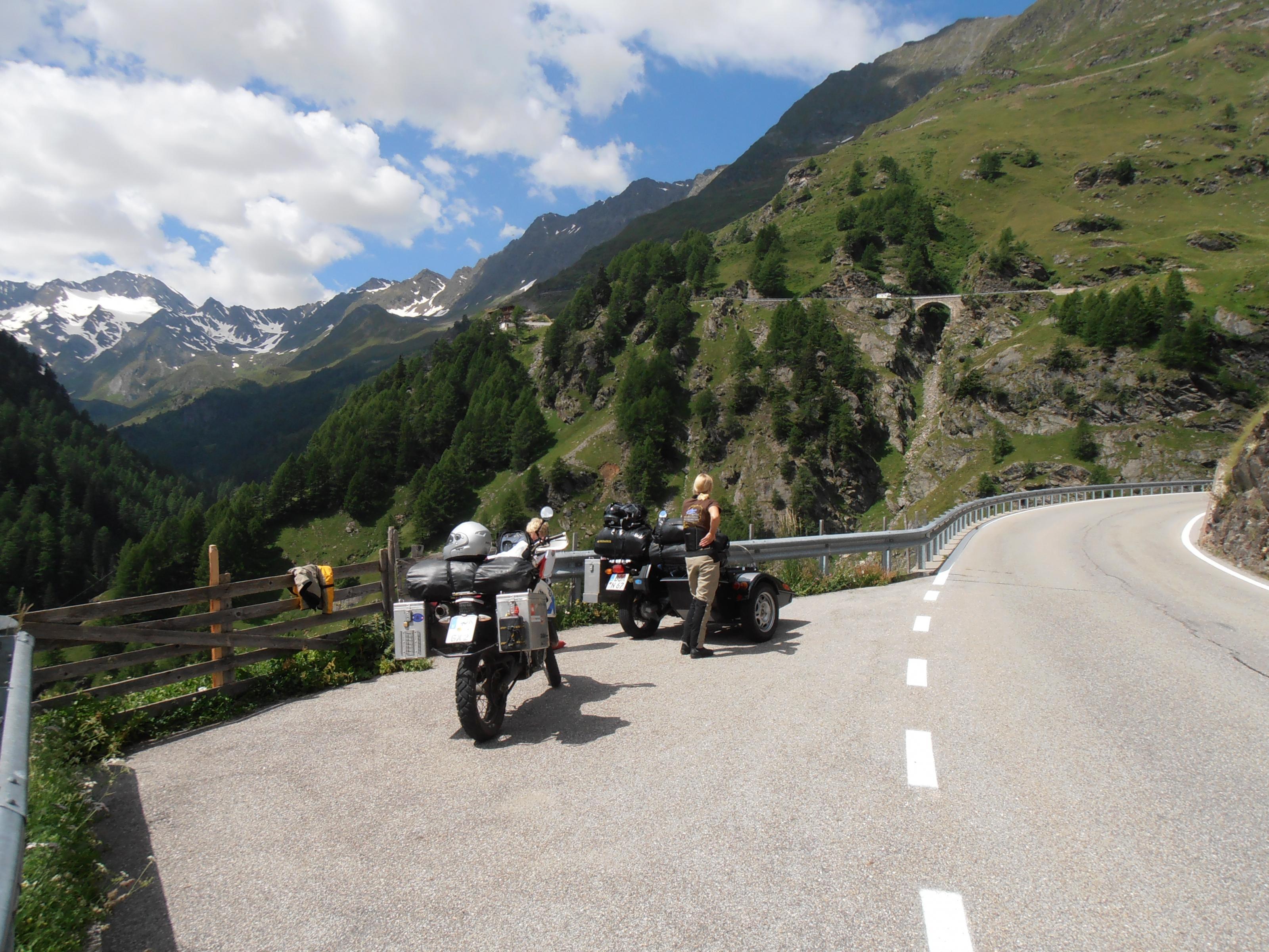 Ohne Fahrpraxis direkt über die Alpen, Kehren ohne Ende und das mit einer schweren BMW, Respekt.