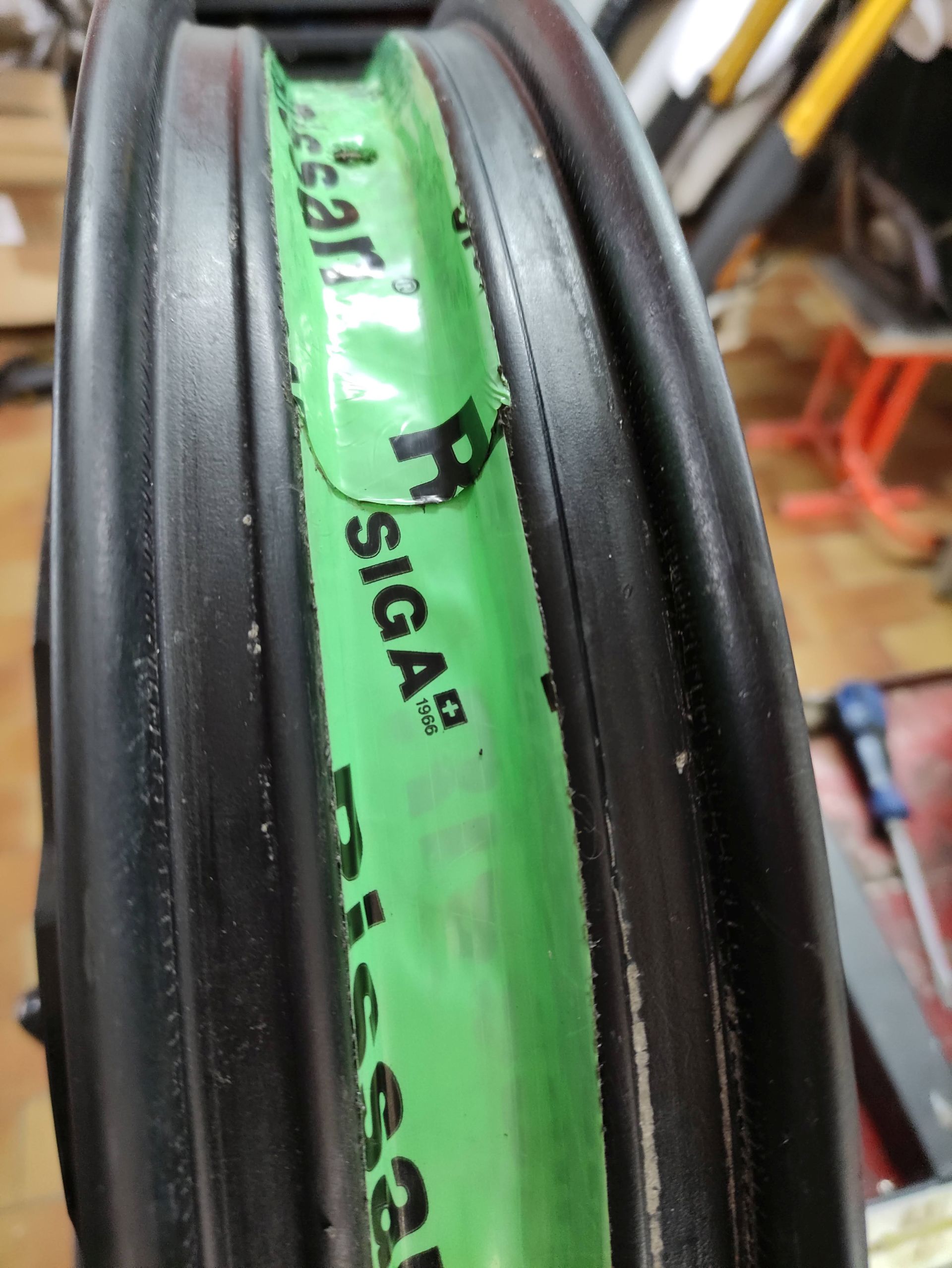Hinten ging es relativ problemlos. Vorne brauchte ich 3 Versuche, bis es endlich dicht war. Ich musste das Dichtband weiter an der Felgenschulter hoch kleben, da die Speichennippel so weit außen sitzen.