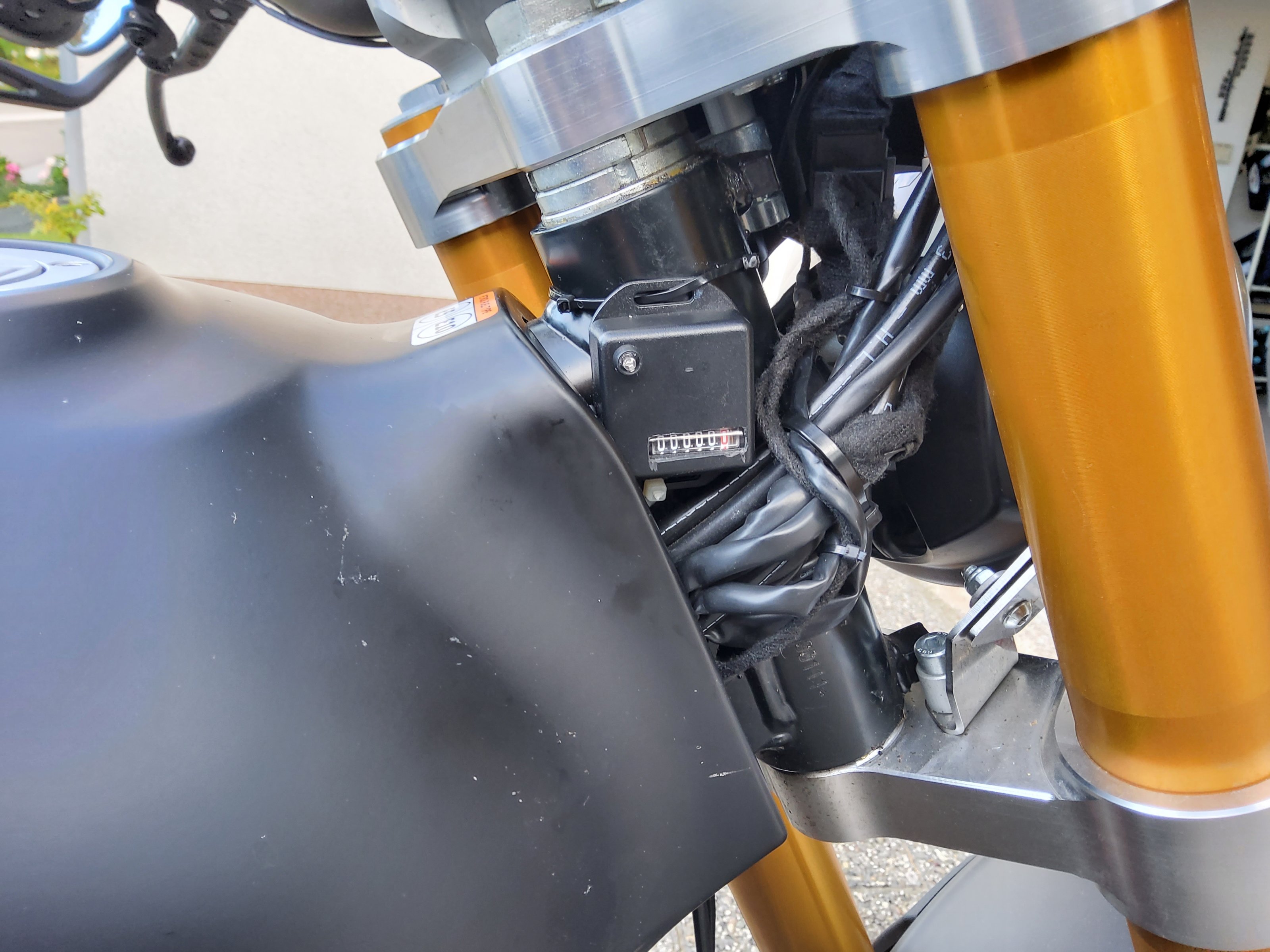 Beides wurde zusammen in Gehäuse verpackt und seitlich am Lenkkopf installiert.
