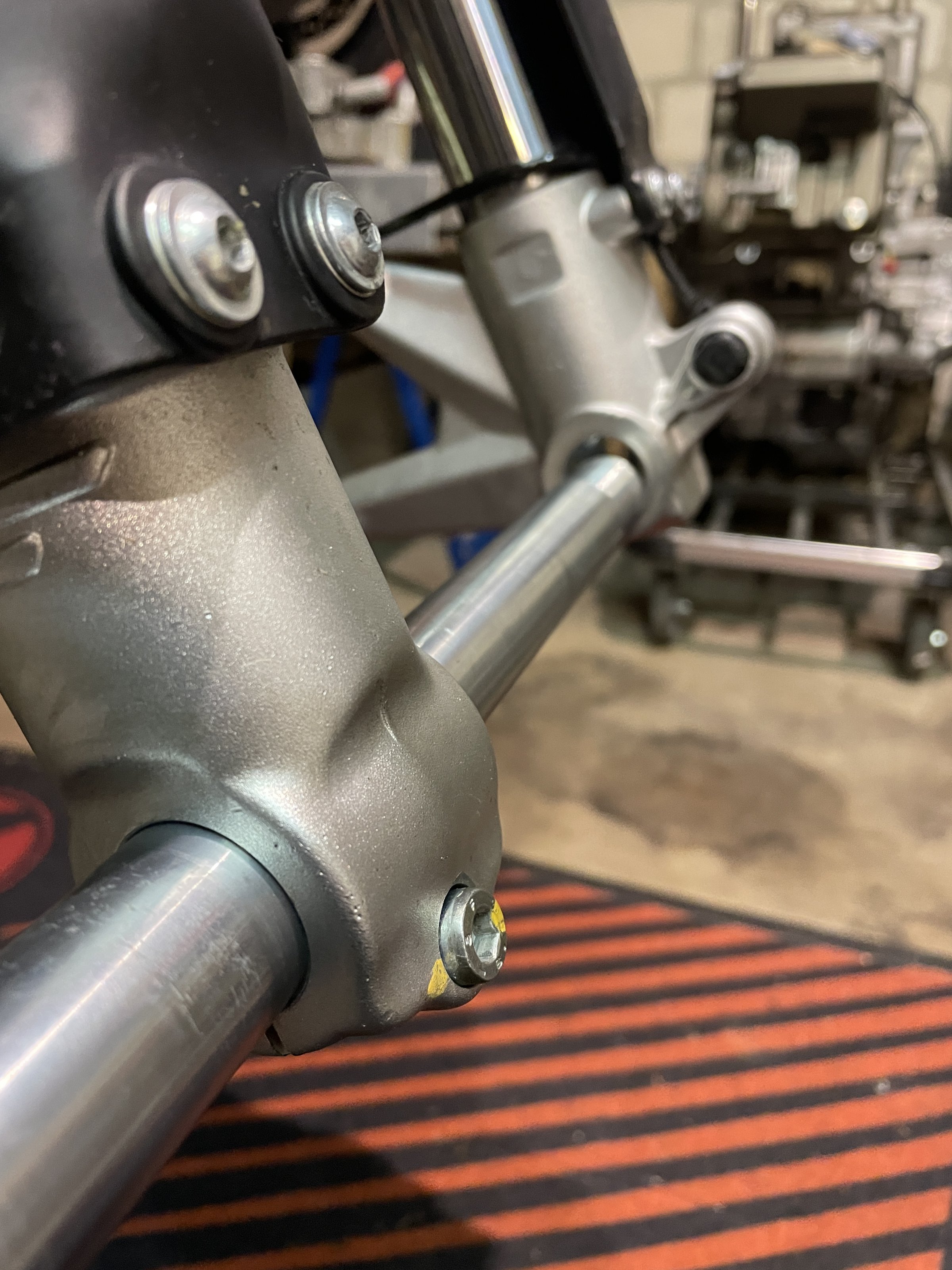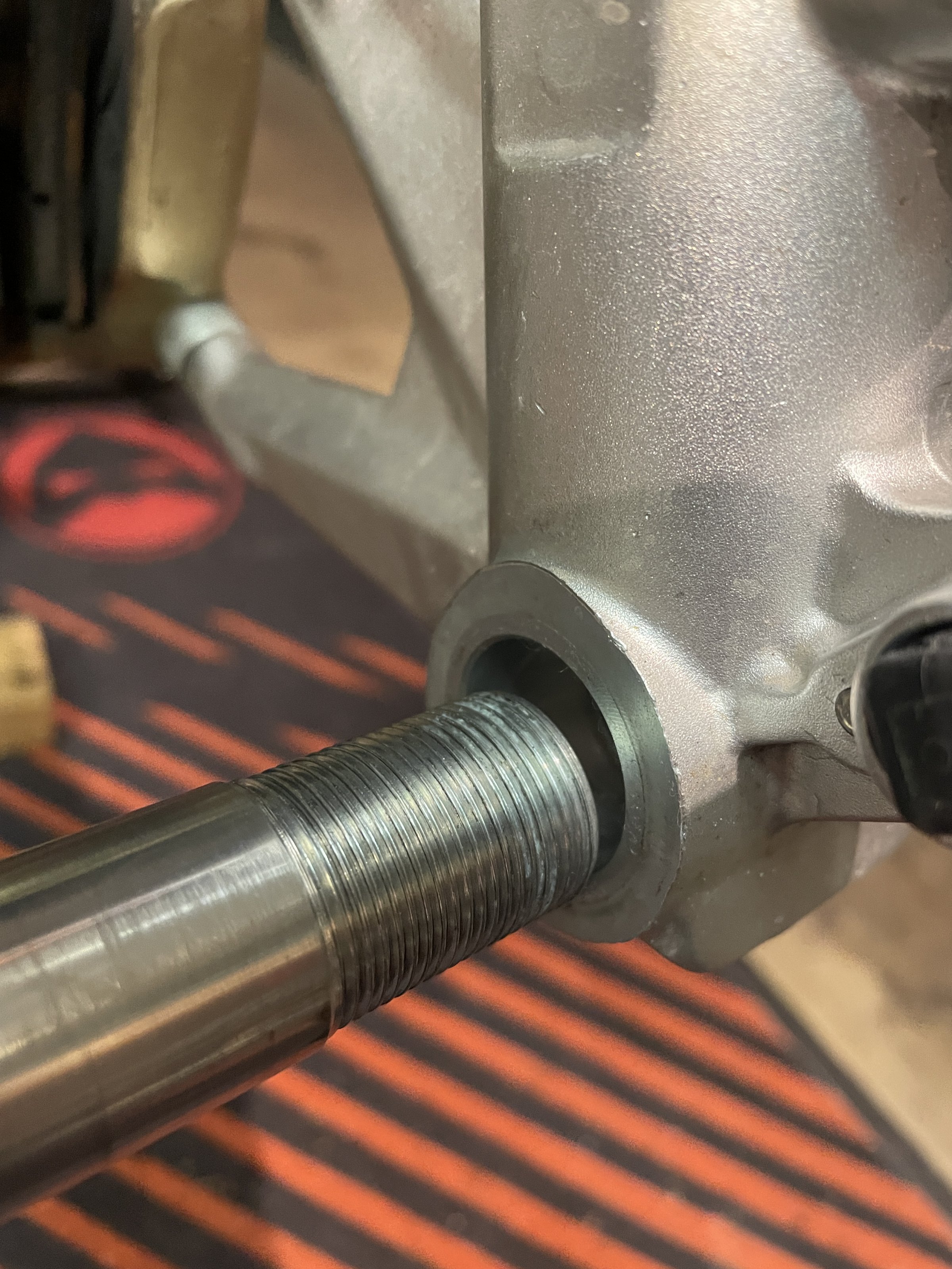 Was mir beim Ausbau aufgefallen ist die Gabel. Sie ist auf den mm genau durchgesteckt, die Aufnahmen für die Achse habe aber einen deutlichen Versatz. Ist das schonmal jemanden aufgefallen?