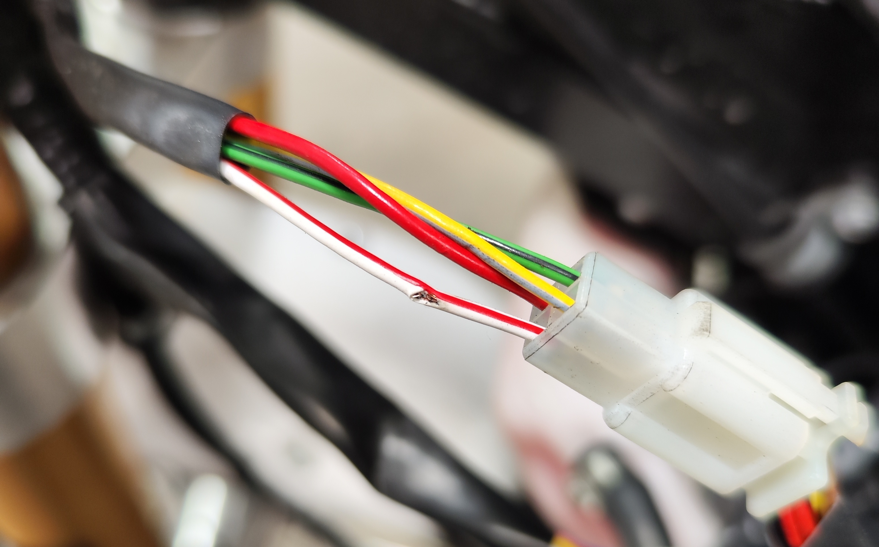 Am Stecker für das Zündschloss ist ein Weiß Roter Draht mit ner defekten Isolierung .