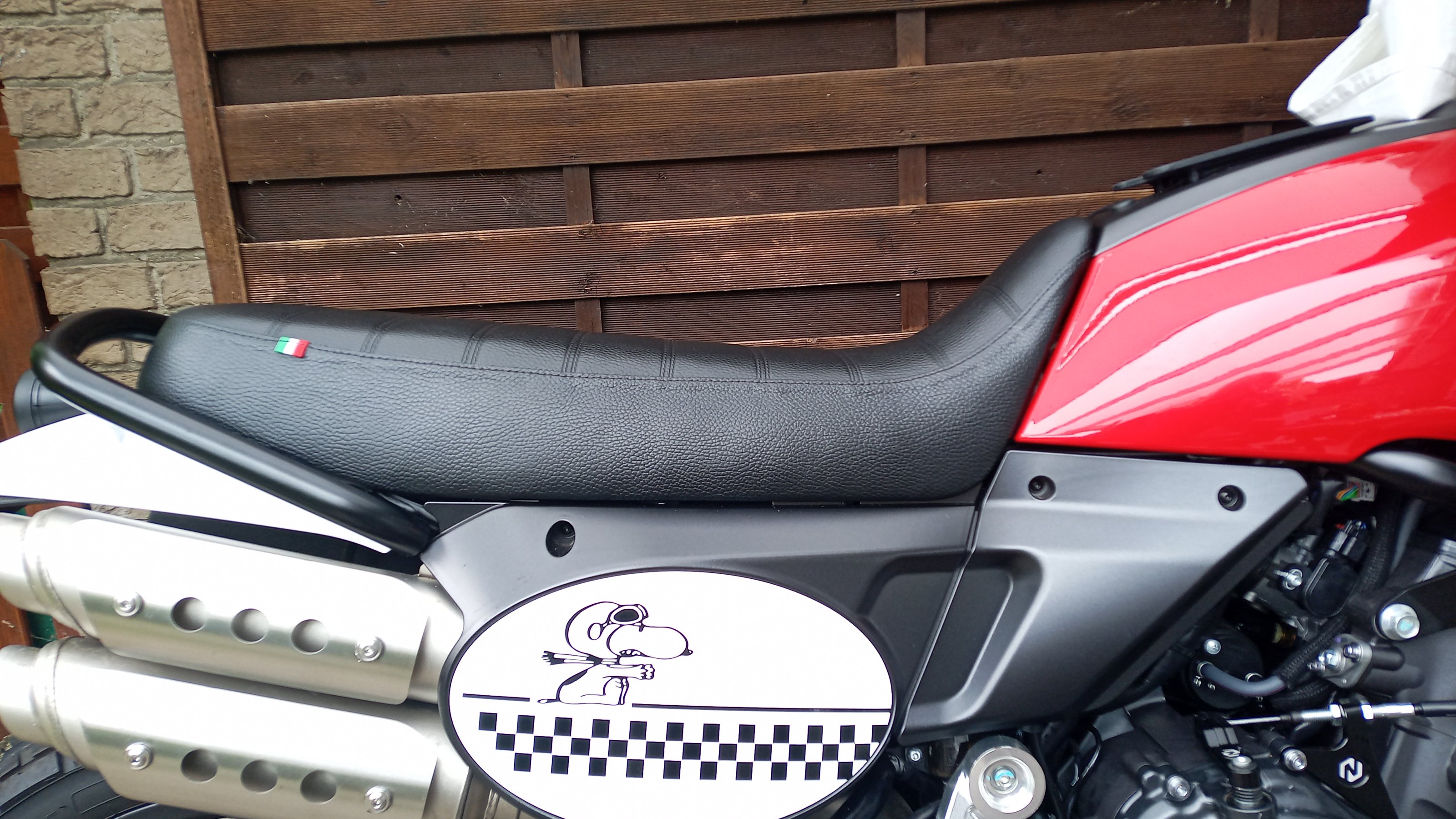 Und die Caballero Logos rechts und links am Tank waren auch schon losvibriert. Musste ich mit doppelseitigem Klebeband befestigen. Die Klemmscheiben waren nicht mehr festzubekommen.