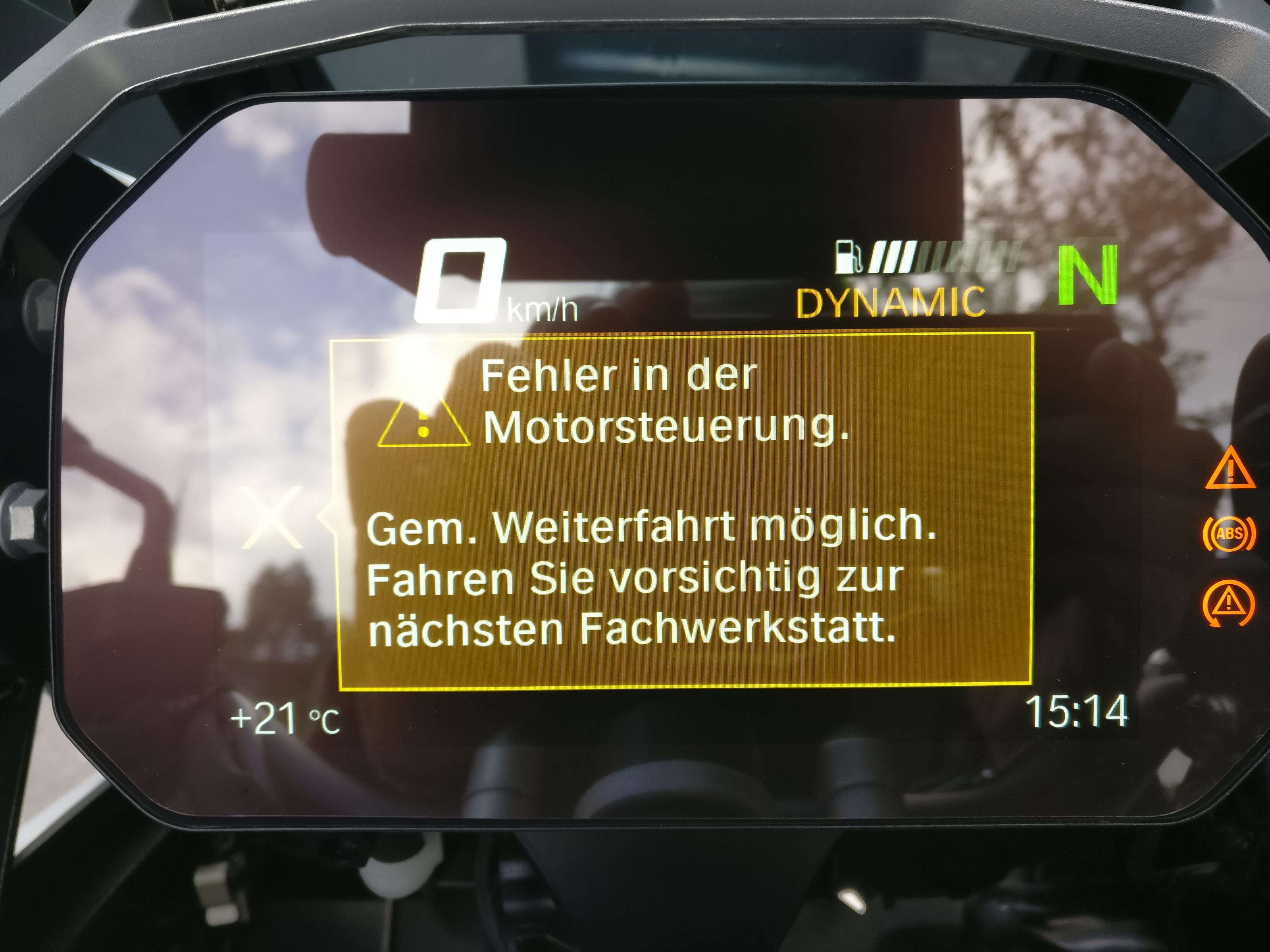 Heute zum zweiten mal einen Fehler angezeigt bekommen, Fehler Motorsteuerung, Moped läuft normal weiter. Nach Zündung aus und Neustart wieder alles ok.