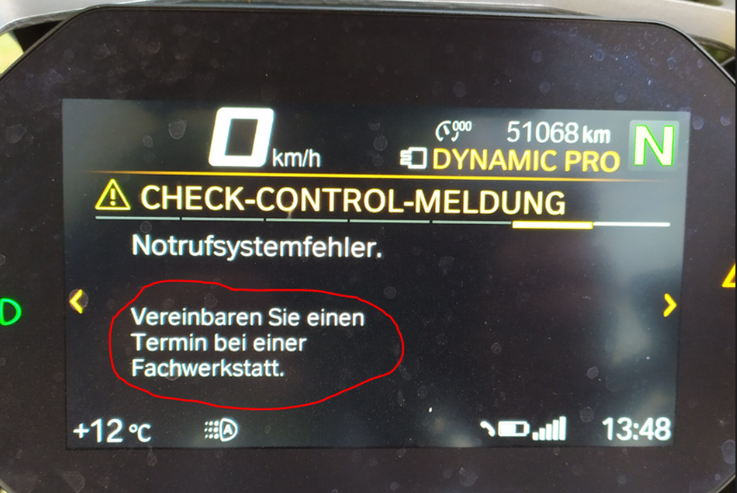Hatte die Probleme kurz nach der Einfahrkontrolle. System bekam ein Update und es sollte behoben sein. Der nächste Schritt ist ein neues Steuergerät, dass bis heute nicht verbaut ist. Die Meldung die jetzt ab und an kommt ist nicht zwingend mit einen Werkstattbesuch verbunden, sinngemäss, SOS funktioniert eingeschränkt, sollte es öfters vorkommen wenden Sie sich an die Werkstatt.