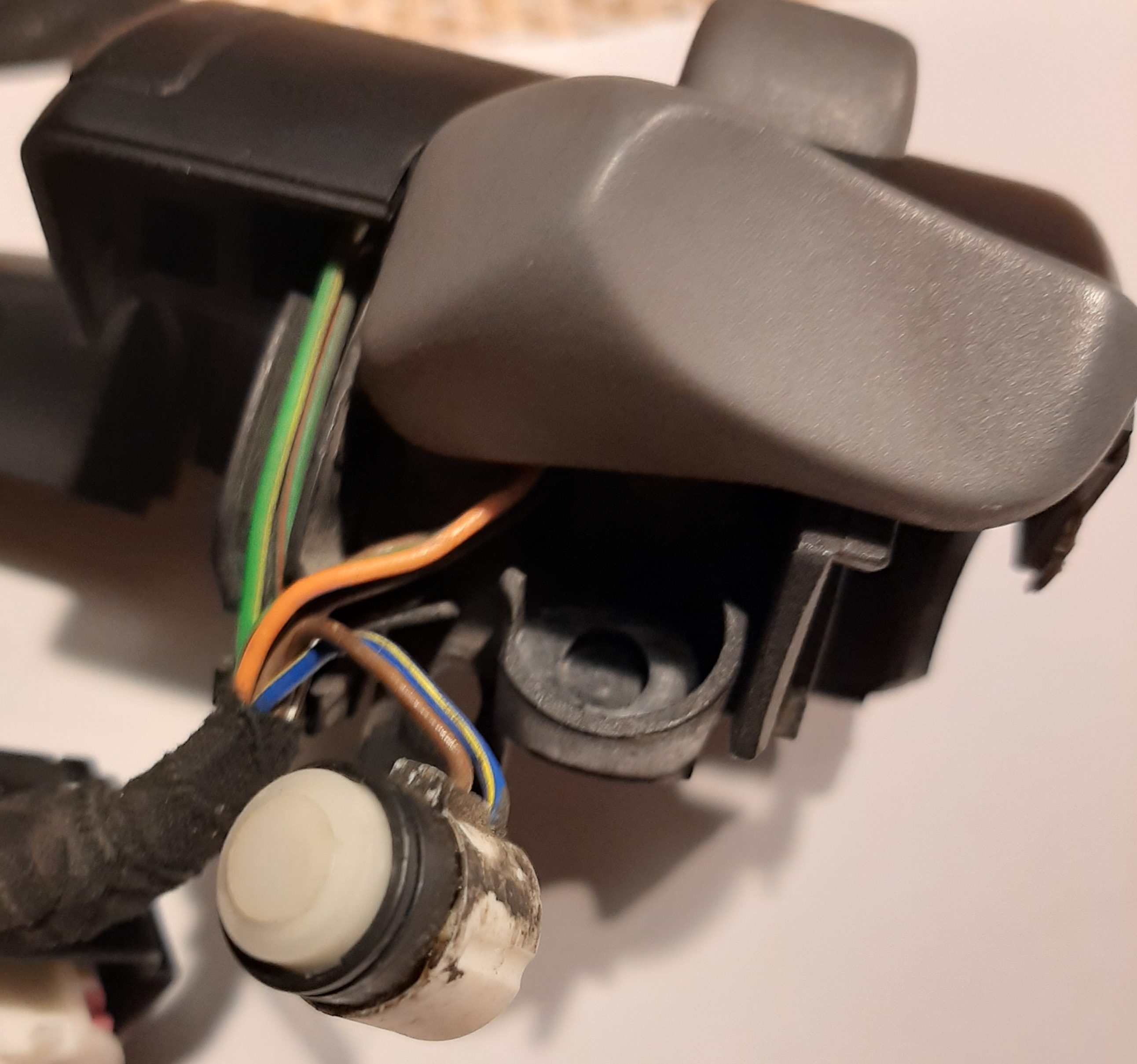 Oder doch ein Kabelproblem - welche Farben führen zum/vom Schalter rechts ?