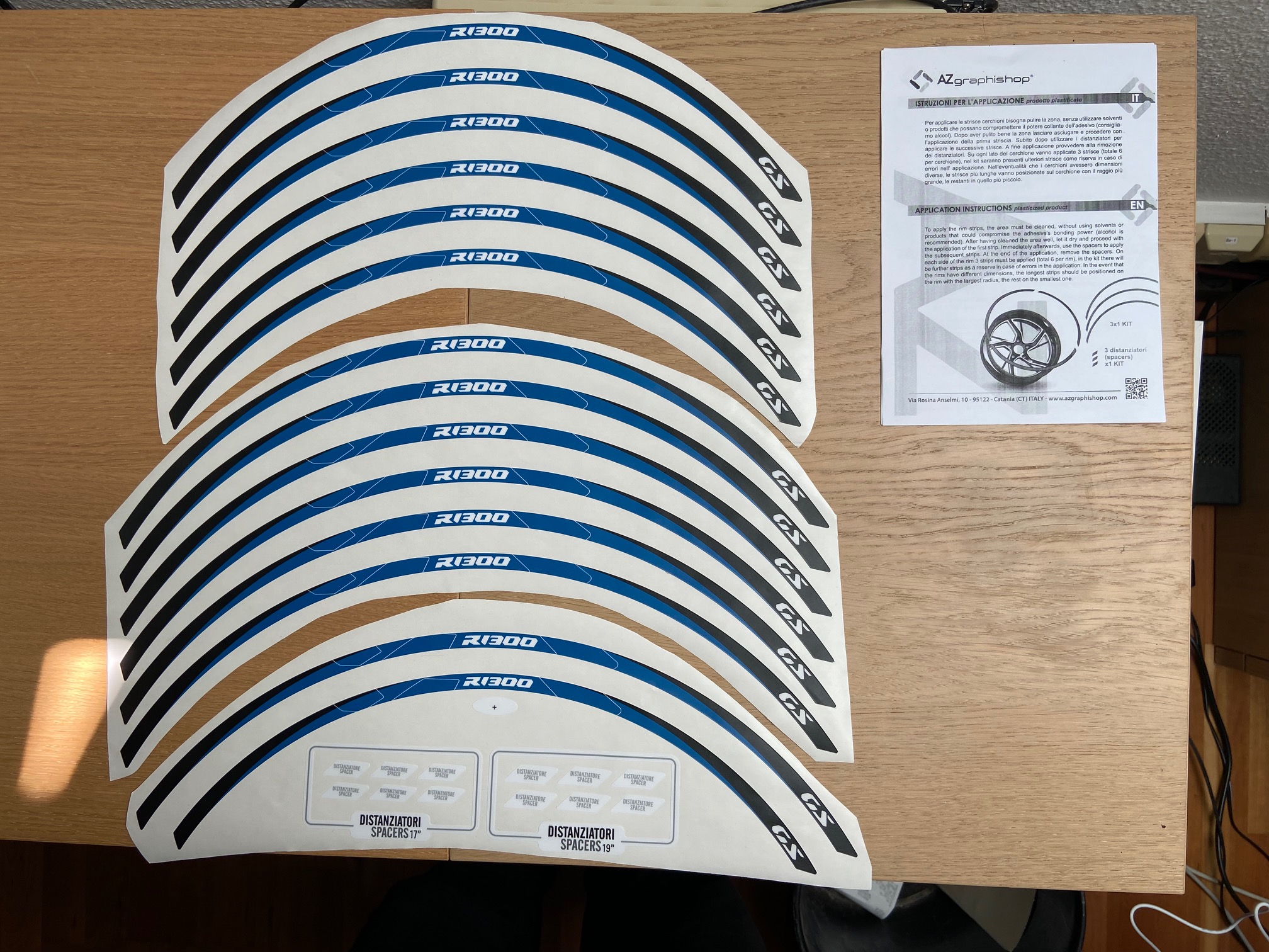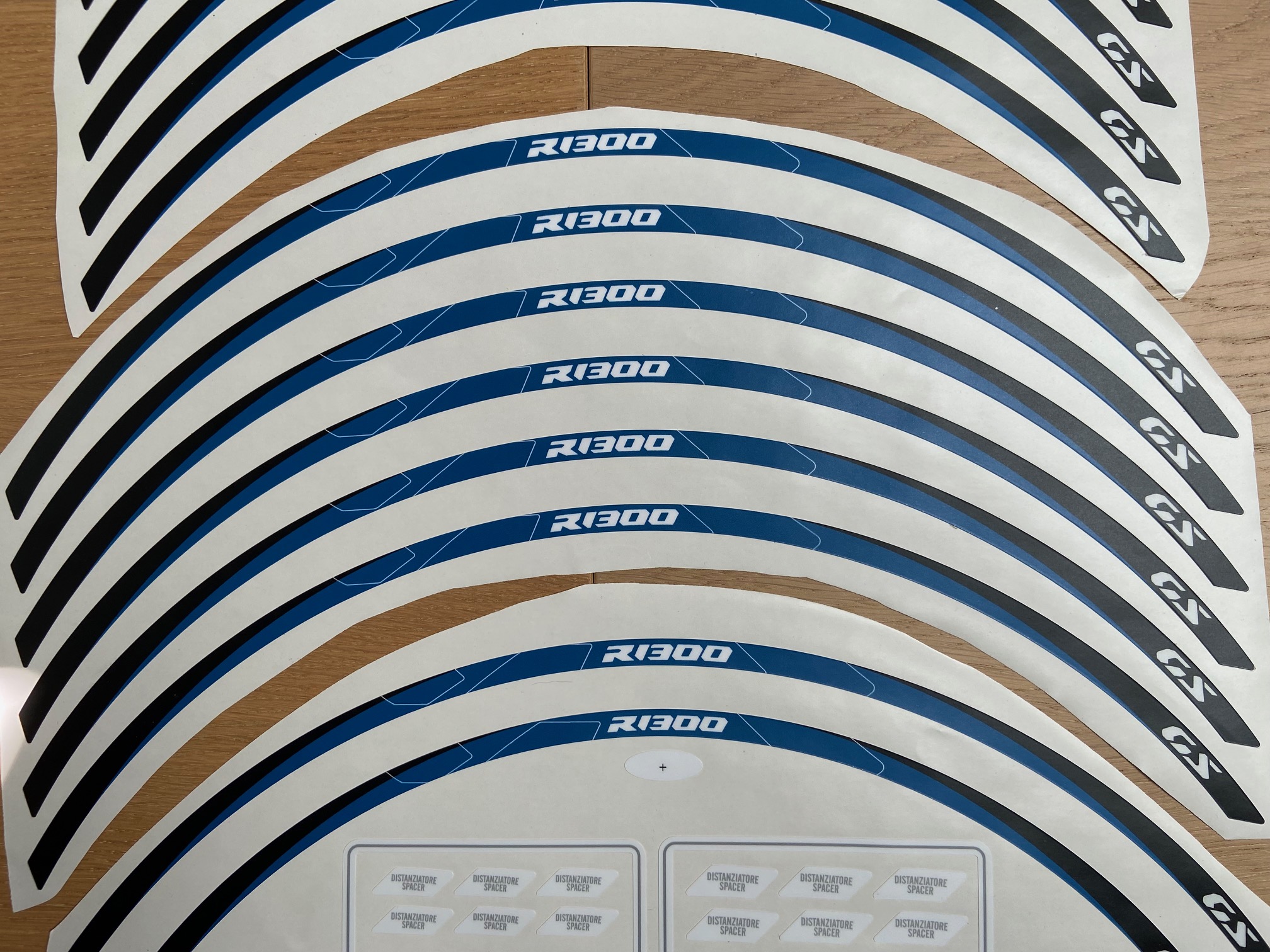 Abzugeben habe ich Felgenrandaufkleber blau-schwarz (17" und 19") für die 1300GS von AZgraphishop. Nagelneu und unbenutzt, ich möchte sie nicht mehr an meinem Bike montieren. Pro Rad 6 Segmente, zwei Zusatzstreifen als Ersatz sind mit dabei.