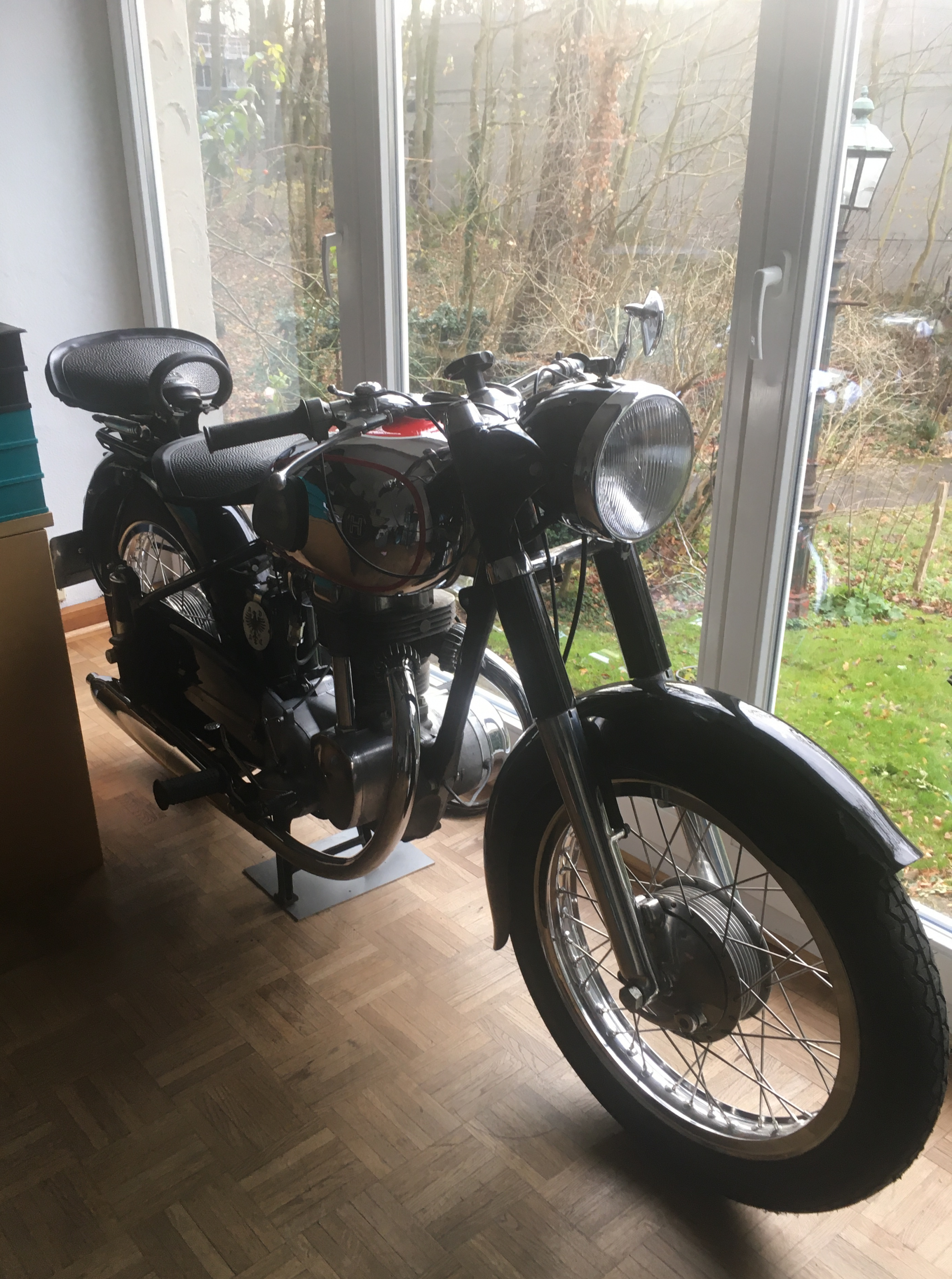 Nöö, obdachlos bin ich zum Glück noch nicht, aber das Bild vom Moped gefällt mir, so würde ich sie dann ins Wohnzimmer stellen...