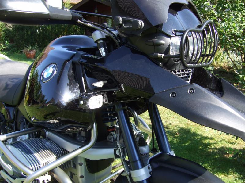 ich hab heute mal ein paar Bilder gemacht. Als Verlängerung habe ich 15er Kupferrohr genommen. Es gibt von Kellermann allerdings auch orschinal Verlängerungen. Die Distanzbuchsen sollte man auf den Fotos sehen. Nicht wundern, auf den Bildern ist der Umbau bei einer 1100er GS zu sehen. Die Distanzbuchsen passen aber auch bei der 1150 GS.
