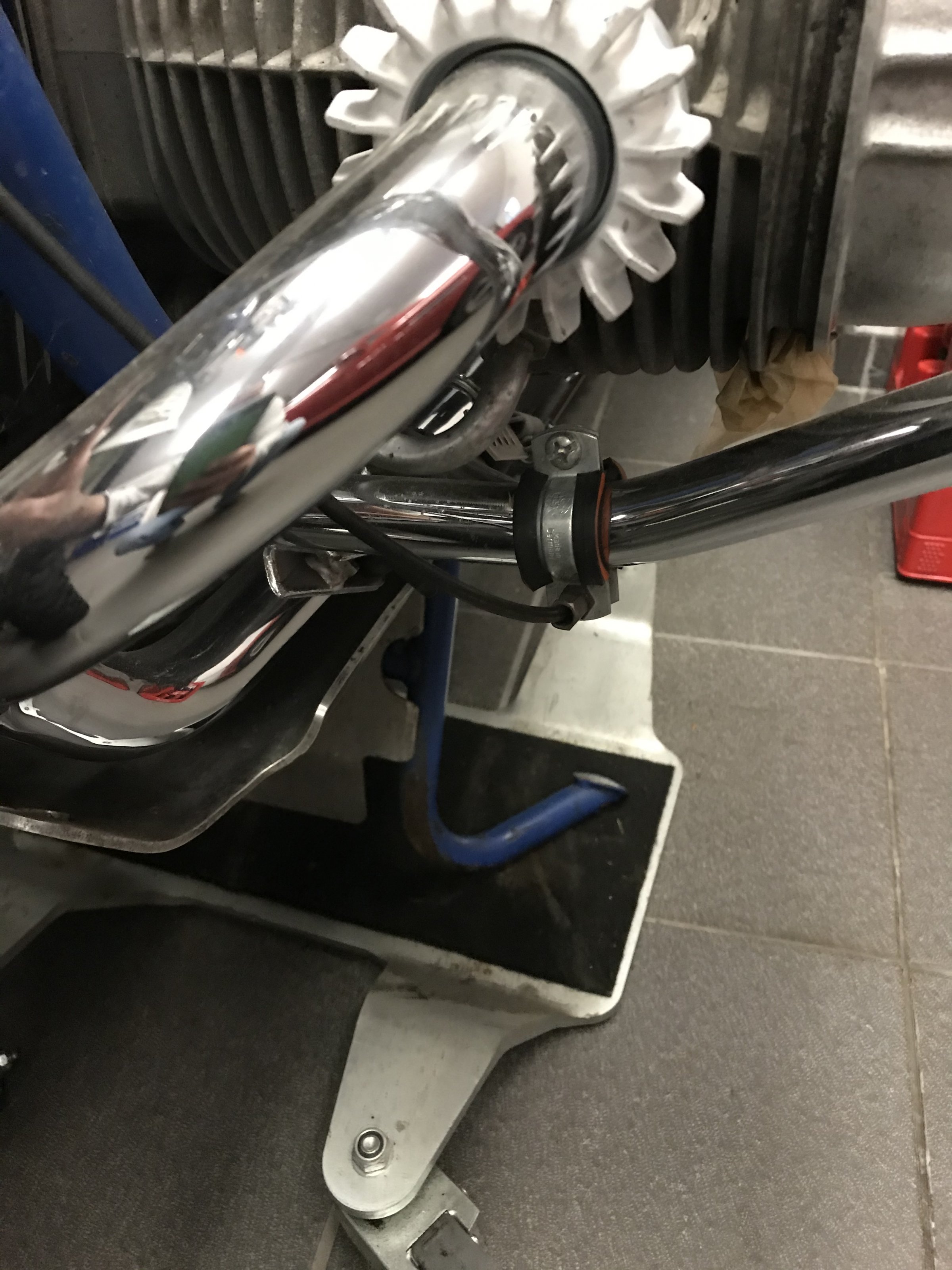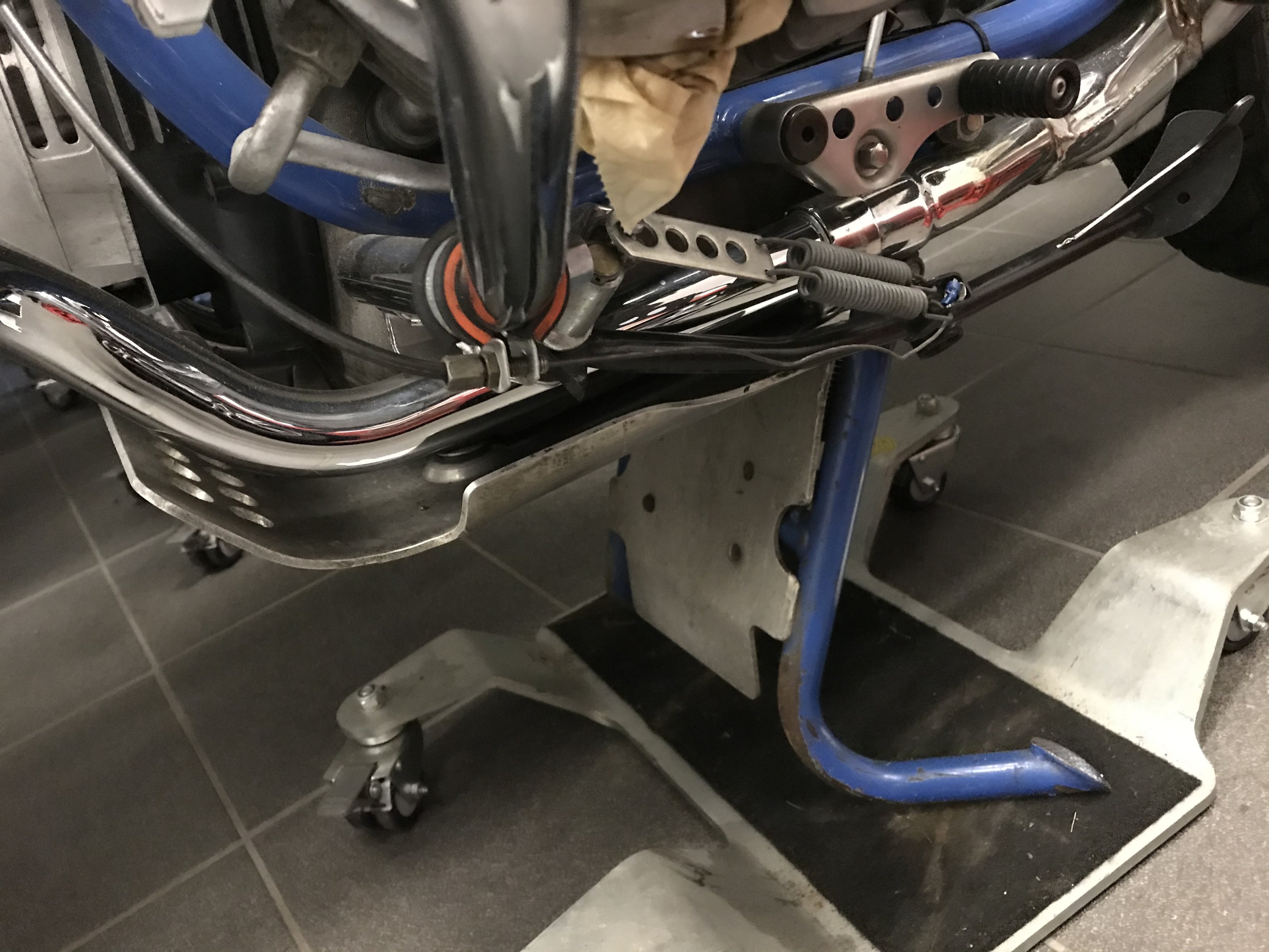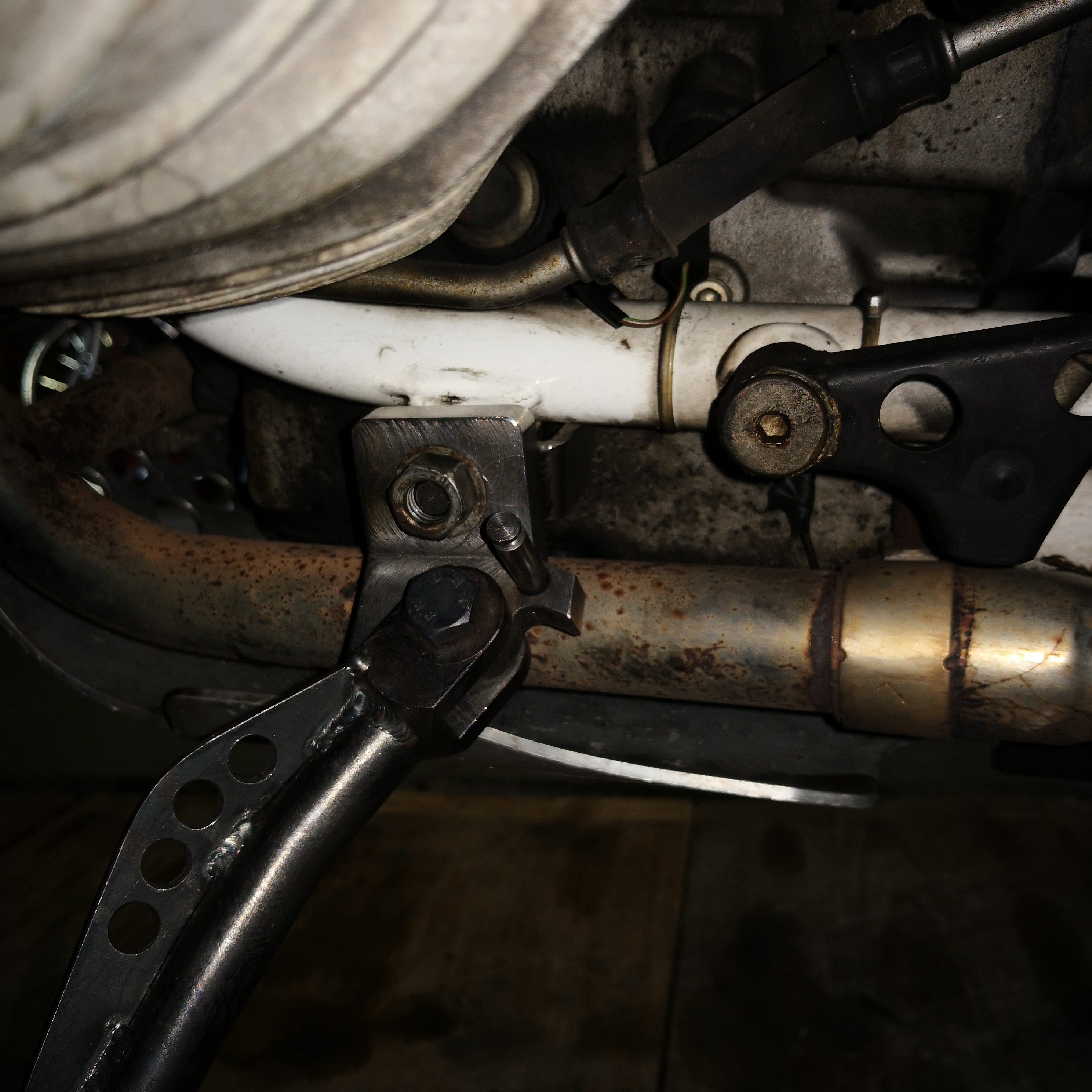 Ist an der unteren Befestigung vom Sturzbügel geschraubt. Den Sturzbügel hatte ich dafür demontiert. Ich möchte aber Seitenständer und Sturzbügel dort anschrauben und hoffe, dass das auch möglich ist.