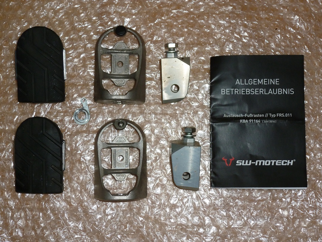 Verkaufe hier einen gebrauchten Satz "SW-MOTECH" Fußrasten inkl. ABE. Die Fußrasten lassen sich auf 2 verschiedene Höhen einstellen, Originalhöhe und (-15mm). Die Rasten waren ca. 10.000km montiert. Da die Maschine verkauft wurde kommen diese Rasten jetzt in den Einzelverkauf. Verkauf erfolgt wie auf den beiden Fotos gesehen.