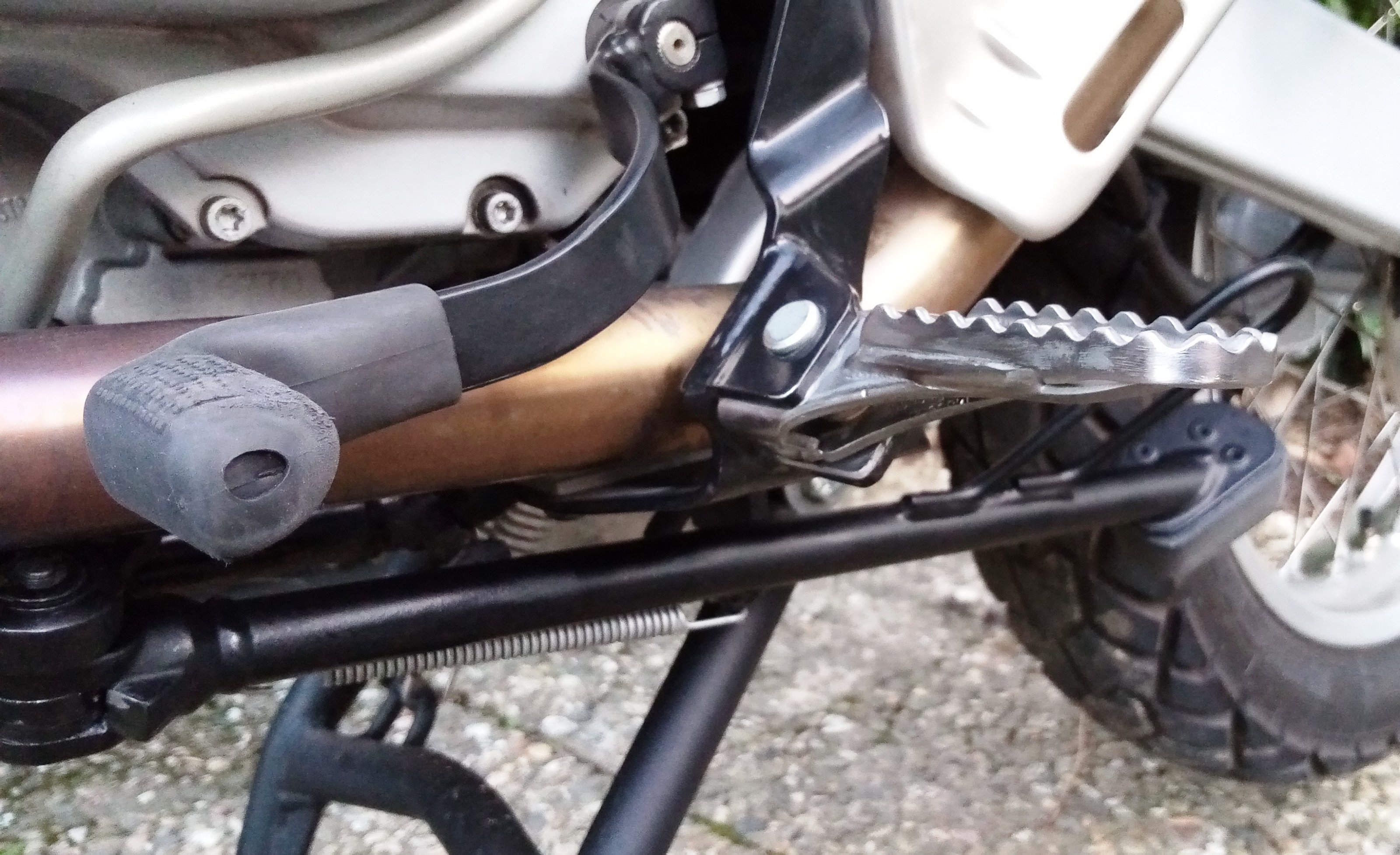 Ich habe die Motech Evo auf tiefster Stellung montiert und ungefähr 25 Grad nach vorn gekippt. Der Höhenunterschied mit Gummis beträgt, in der Mitte der Gummiauflagen gemessen, 10 mm. Wären sie gerade, schätze ich den Unterschied auf 8 mm. Viel ist es nicht, aber auch ein paar Millimeter und die leichte Schrägstellung verbessern das Sitzgefühl. Eine Höhenverstellung oder Schalt-/Bremshebelverbreiterung waren nicht erforderlich.