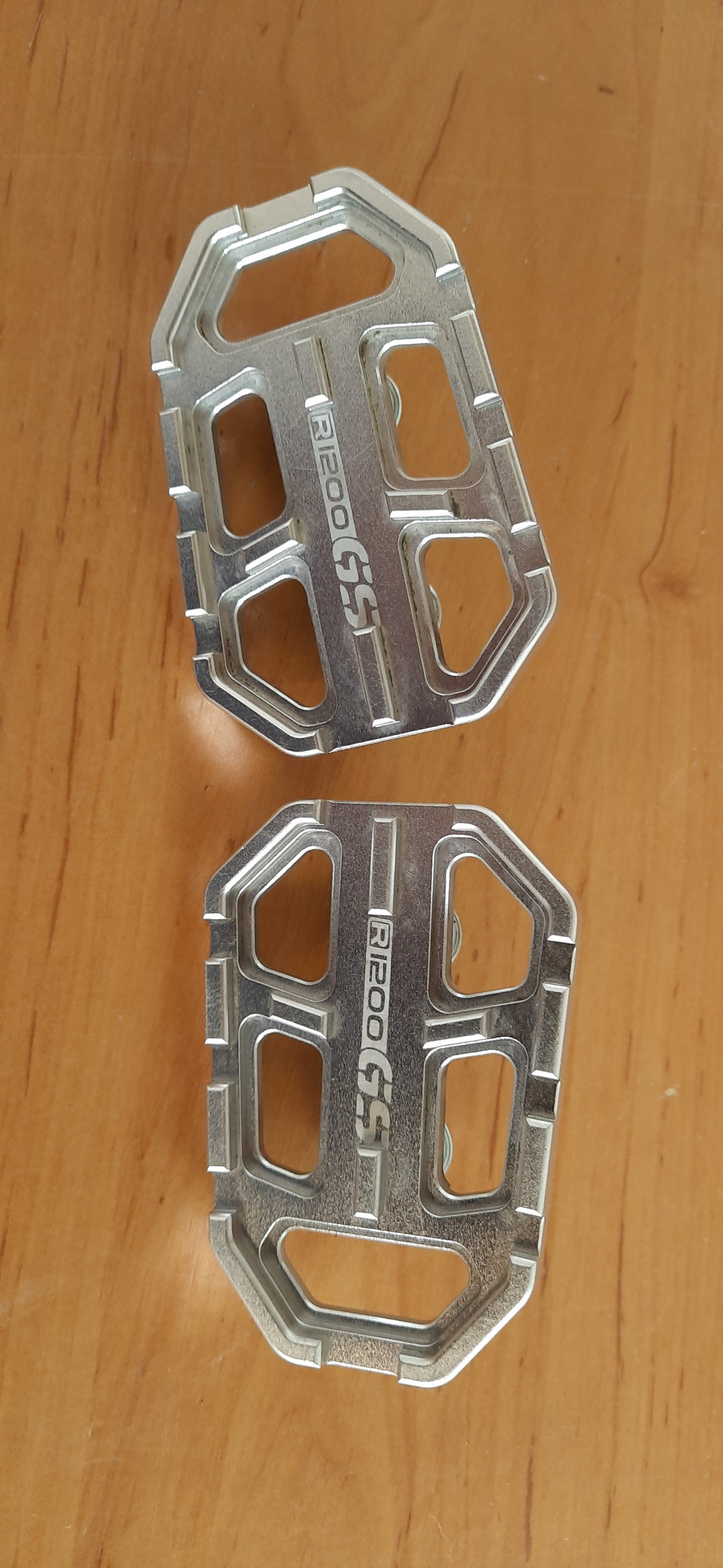 mein Mann möchte solche Teile an die bestehenden Fußrasten seiner GS anschrauben als Auflagenverbreiterung beim Stehendfahren.