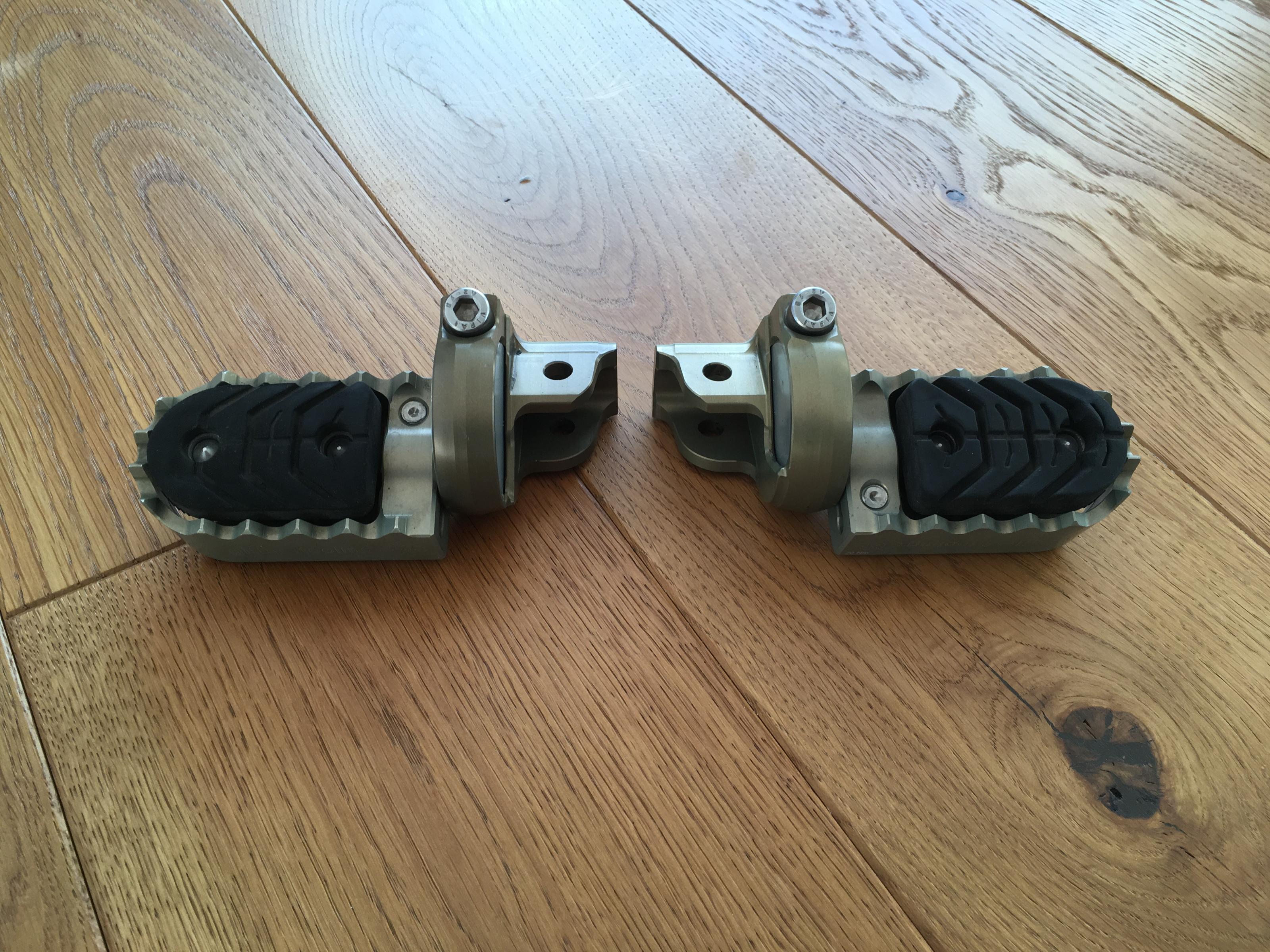 ein paar BMW verstellbare Fussrasten in Gold von Gilles - also links und rechts mit goldenen Federn...