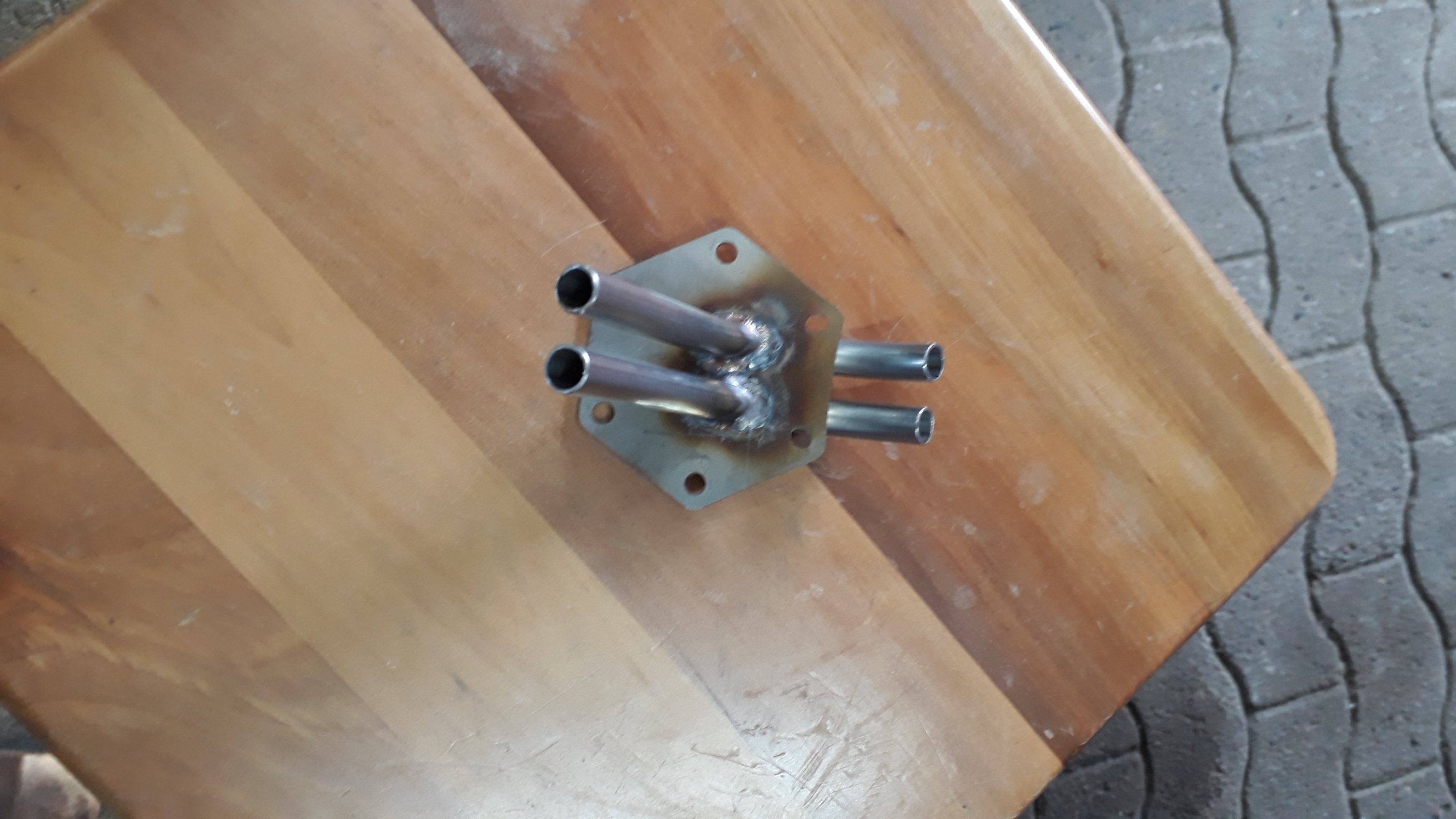 Als Kraftstoffleitung hab ich Schläuche mit 8mm Innedurchmesser genommen. Die T-Stücke habe ich aus Edelstahlrohr 10x1 (8mm Innendurchmesser) gefertigt. Wichtig für die Förderleistung, es darf kein Durchmesser der Leitungen kleiner als 8mm sein.
