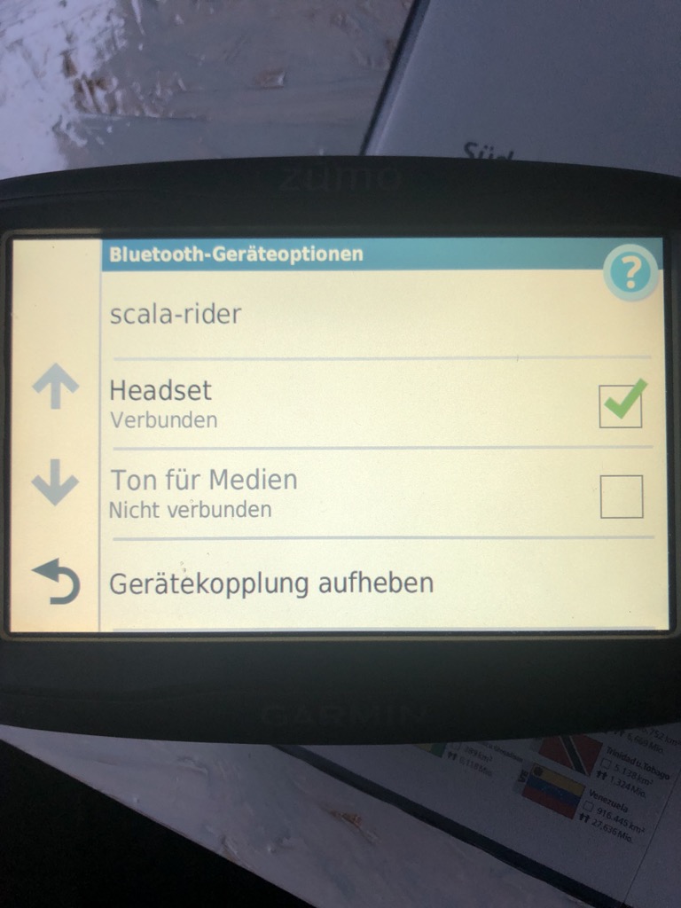 mich habe mir ein Garmin 595lm zugelegt und versuche wie verrückt es mit meinem Scala Rider Solo zu verbinden.