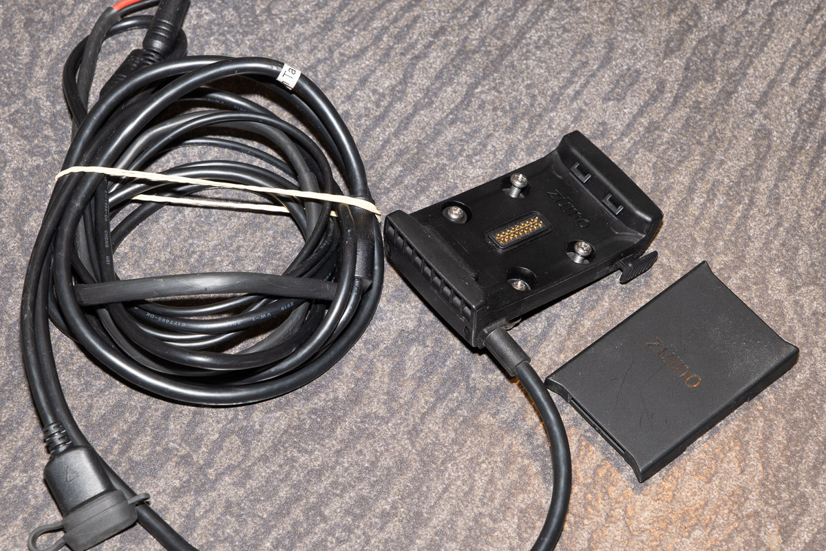 Komplett mit Wetterschutz/Abdeckkappe und Originalkabeln in voller Länge. Passt wahrscheinlich auch für Zumo 595, aber nicht für den BMW Navigator 4/5/6, für den ich es selbst (als Fehlkauf) erworben habe.