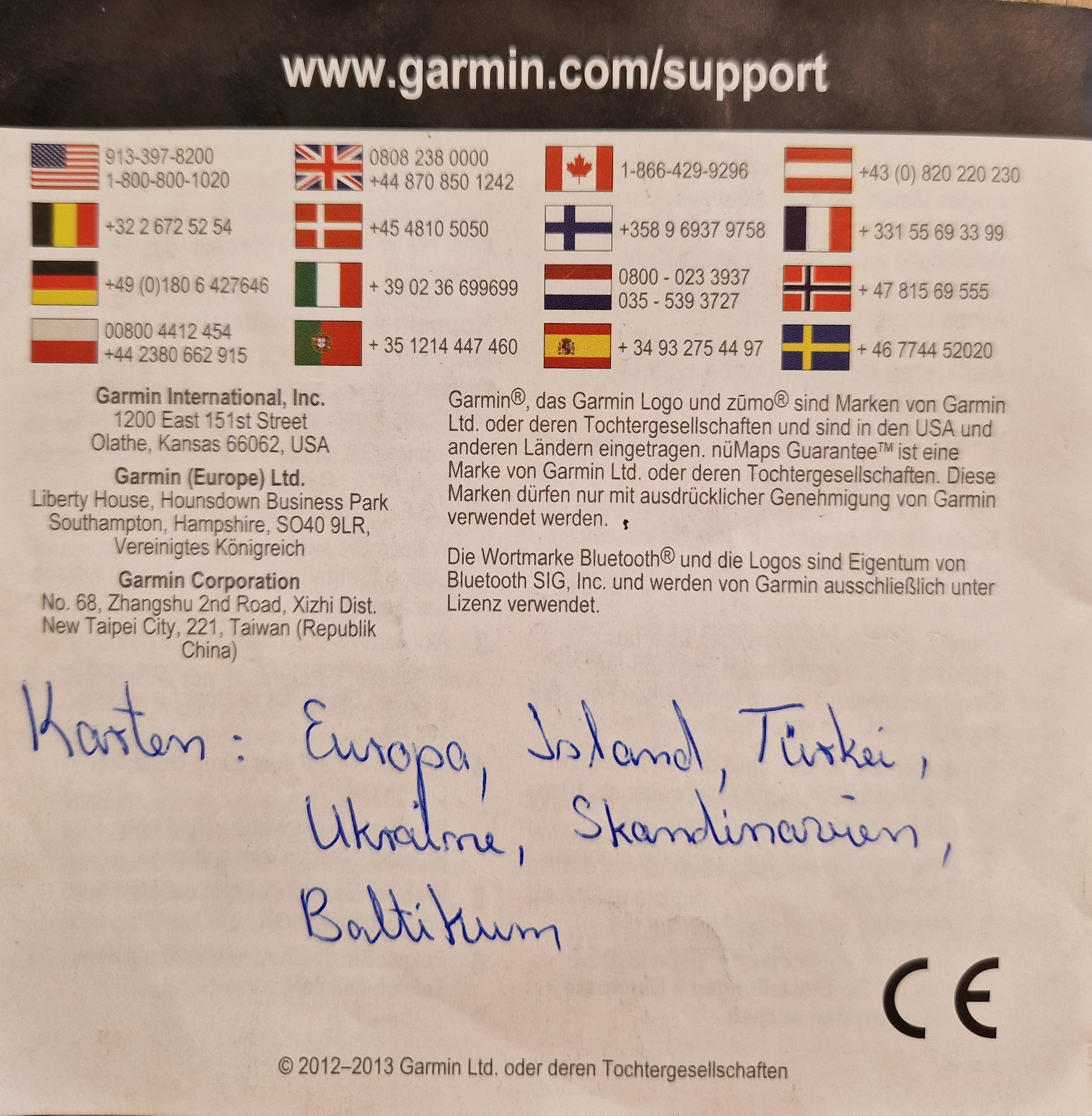 Garmin bietet ein lebenslanges Karten-Update. Umfang der Karten siehe Bilder.