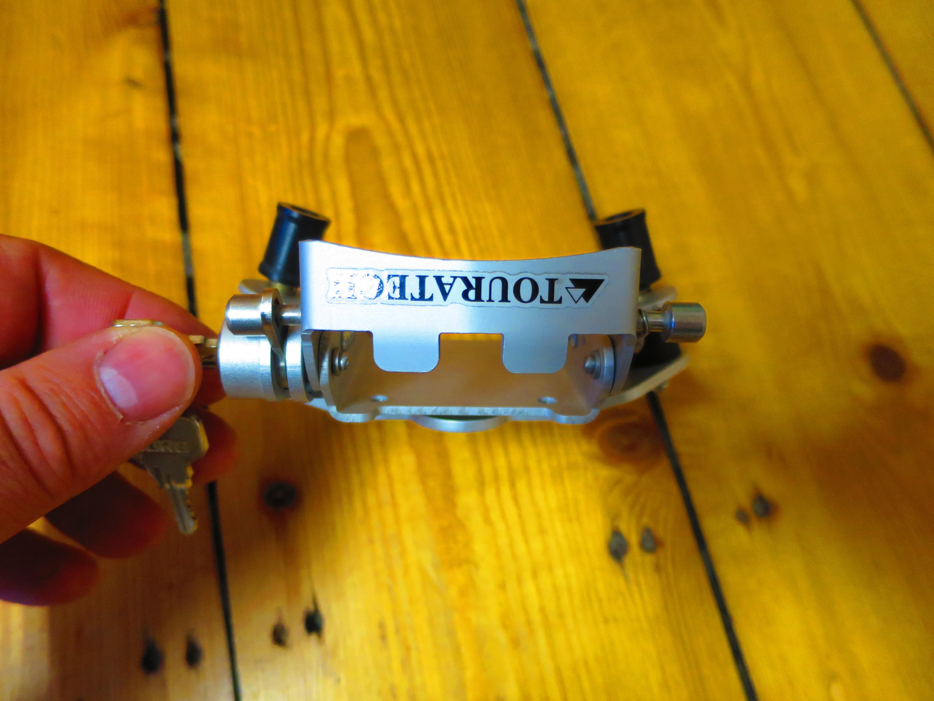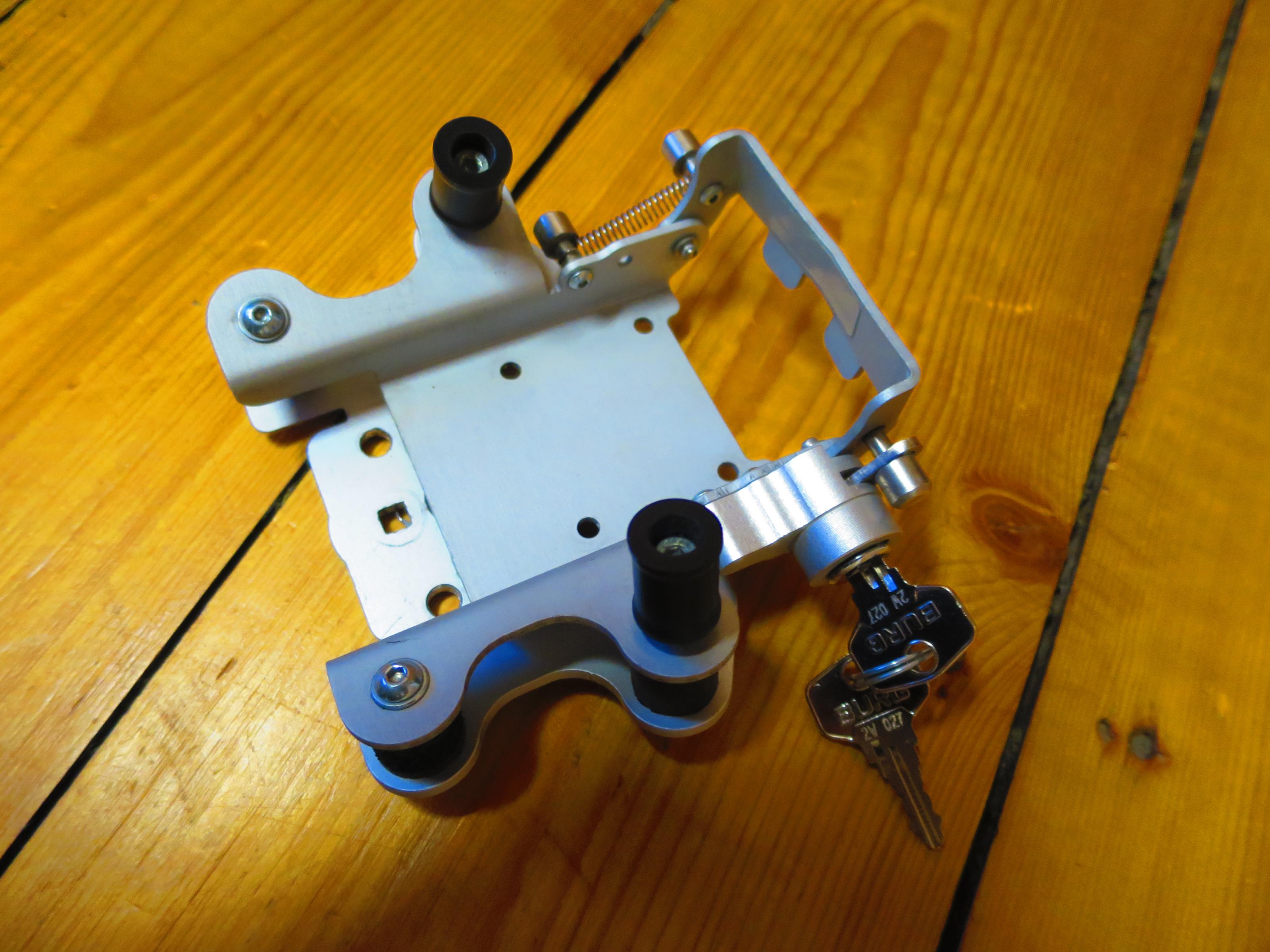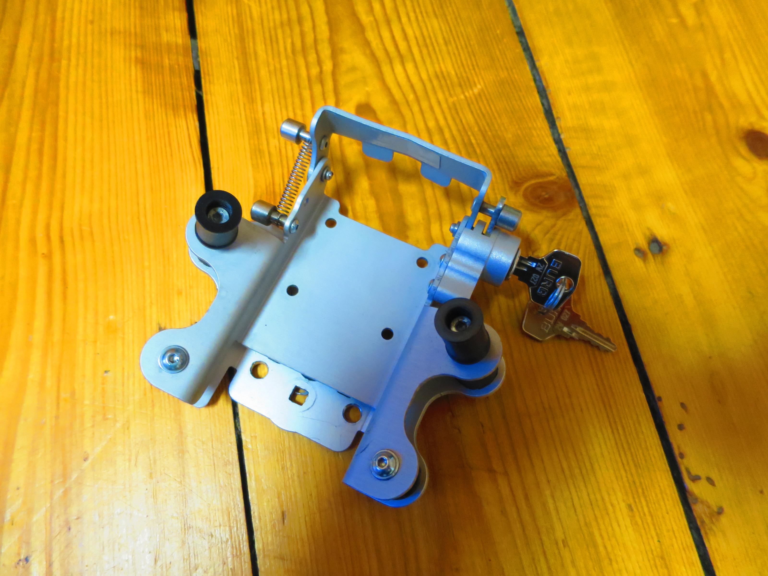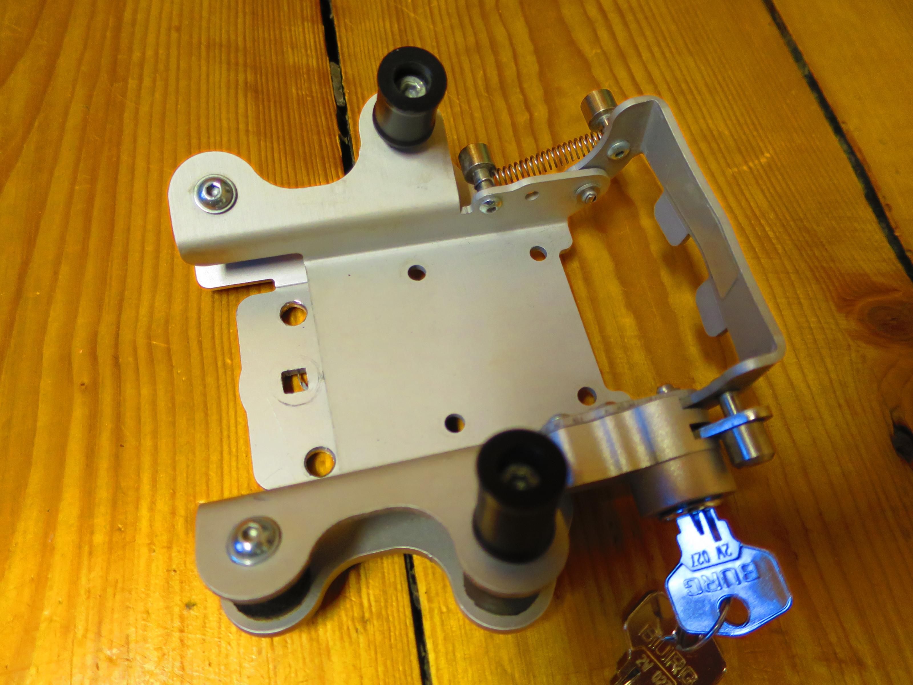 hiermit biete ich eine abschliessbare Motorradhalterung von Touratech mit 2 Schlüsseln an. Das Gerät befindet sich in einem guten Zustand. Auf der Rückseite habe ich zusätzlich zwei Löcher gebohrt. Damit hatte ich die Möglichkeit meinen Klemmhalter an der BMW R 1200 GS Adventure zu montieren.