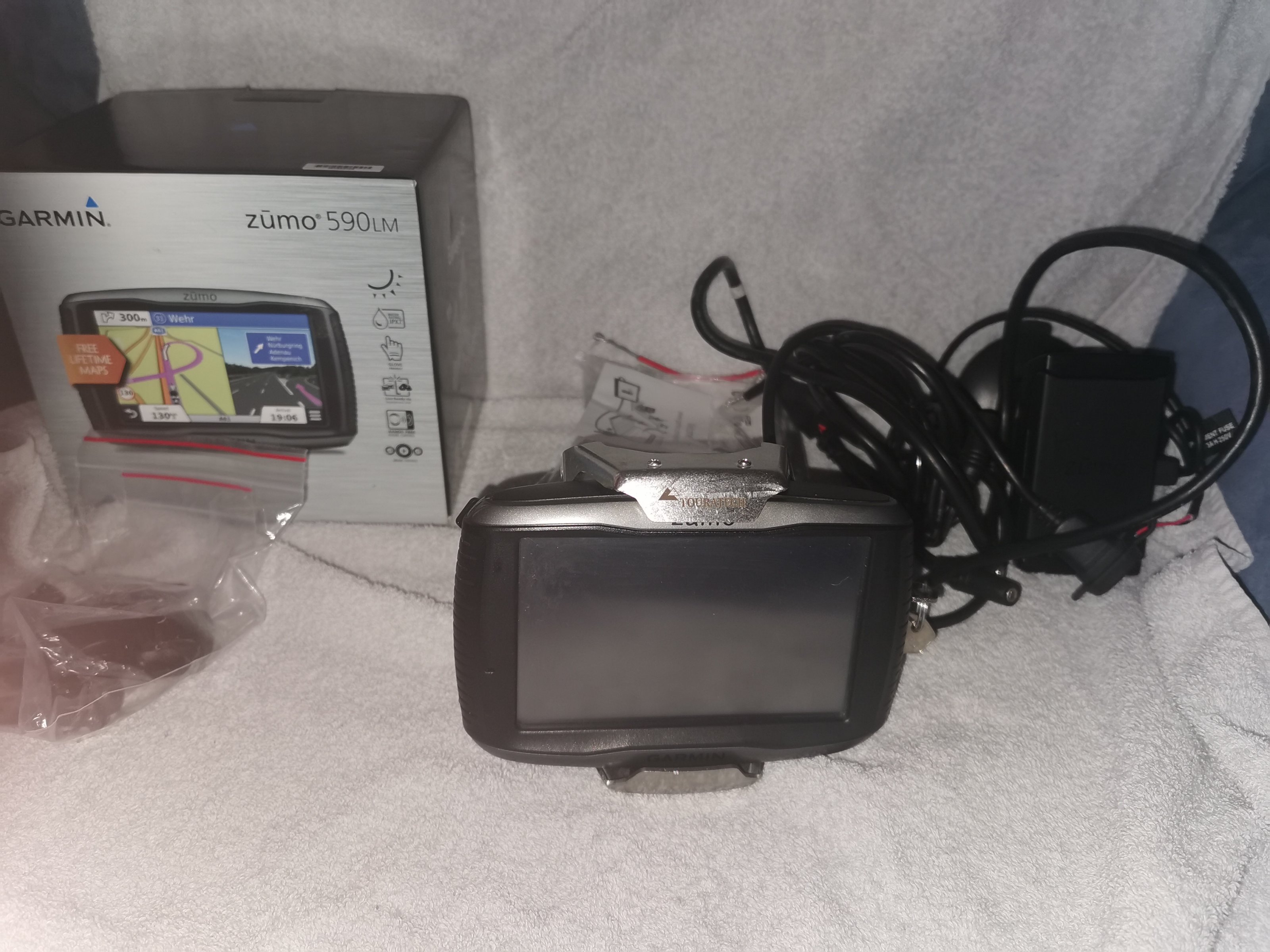 Zum Verkauf steht mein Garmin Zumo 590 lifetimemaps mit knapp 8 Wochen alter abschließbarer Halterung von Touratech. Eine nagelneue Rammounthalterung liegt ebenfalls dabei.