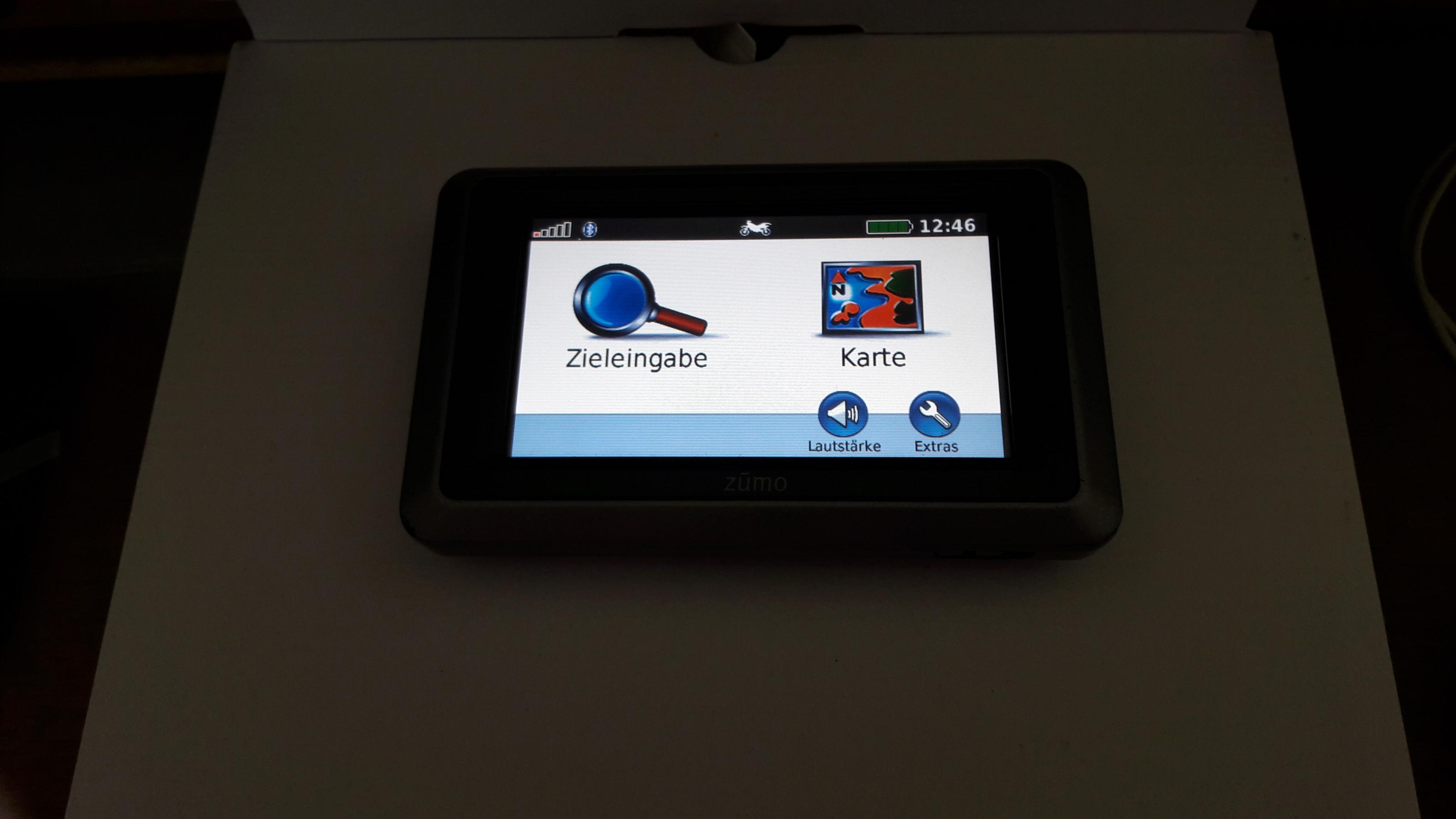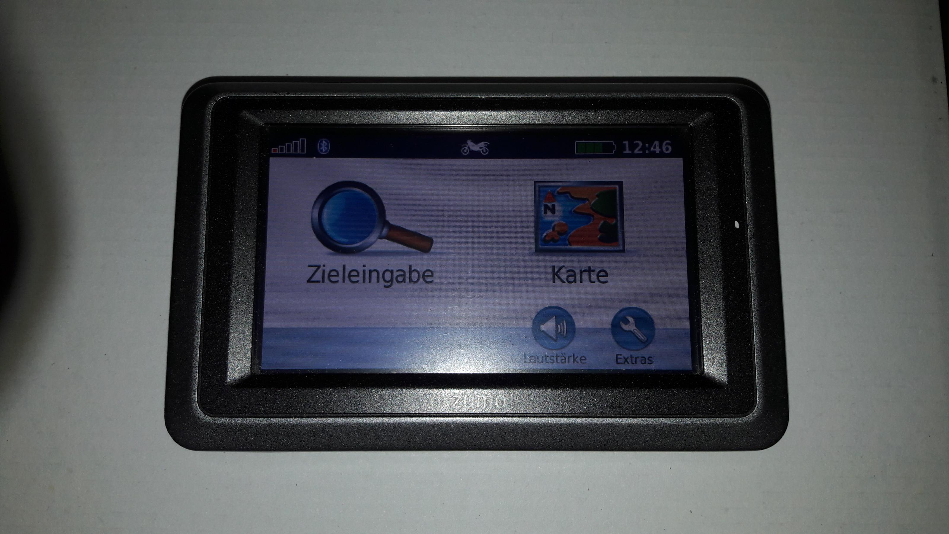 Garmin Zumo 660 inkl. abschließbarem Touratech- Halter m. Kabelsatz ( war montiert an einer BMW 1200 GS Bj. 2012 ) Ladegerät, USB- Kabel, Aufbewahrungstasche, Life Time- Kartenupdate und Blendschutz. VB 285,- Euro.