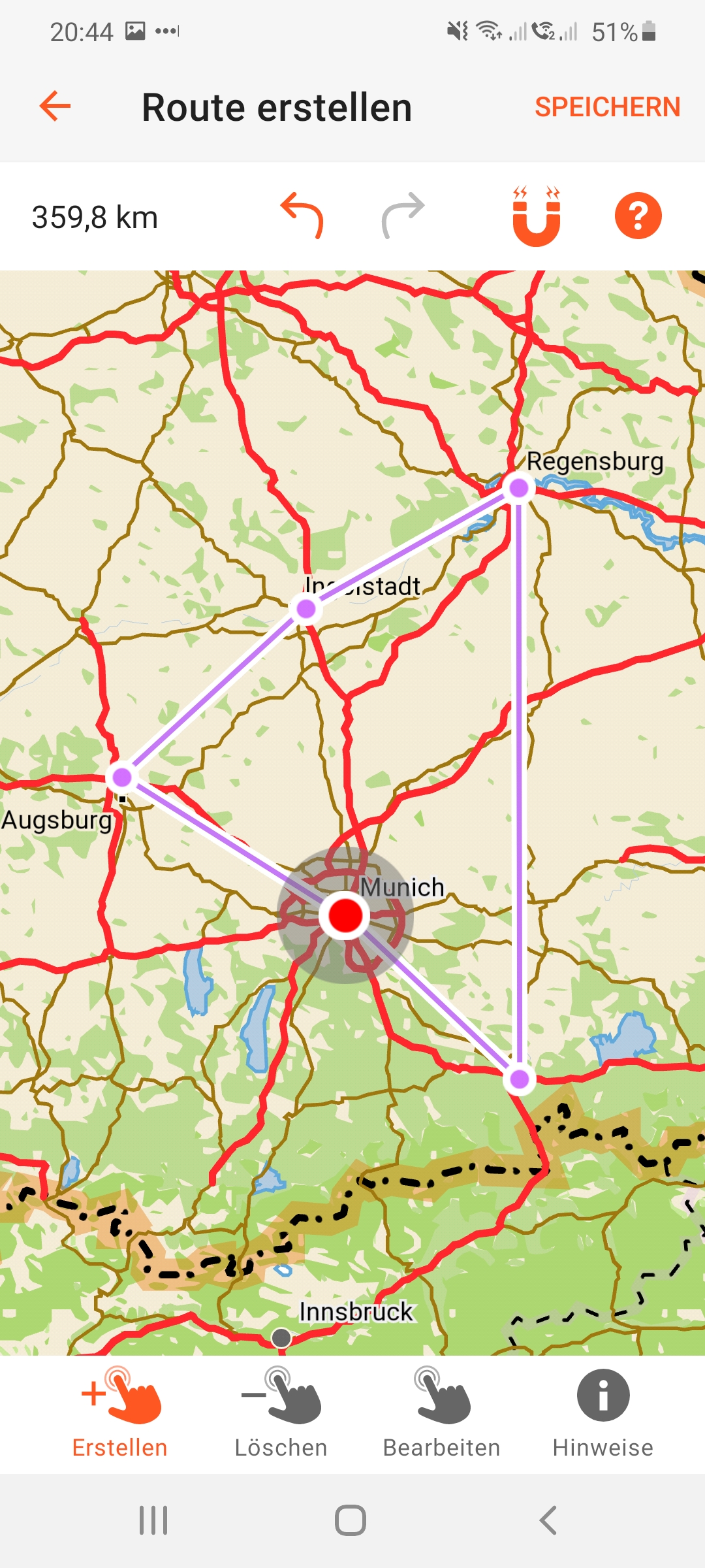 Ich kriege eine Meldung vom gerät "Wenn Sie diese Route bearbeiten, werden die aktuellen Routeneinstellungen verworfen und eine Standardroute berechnet" - diese Meldung bekomme ich nachdem ich ein Track -> Route verwandelt habe.