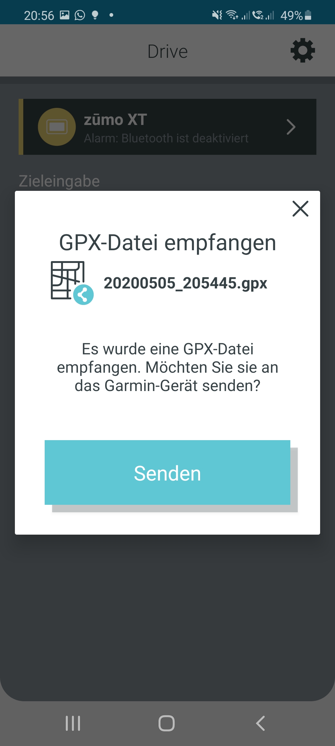 Genau :-) Ich habe bei mir ein paar Tracks auf dem Handy gespeichert nach Ordner sortiert. Wenn ich ein bestimmtes Track fahren möchte, reicht es, dass ich ins jeweilige Ordner reingehe und die GPX mit Garmin teile.