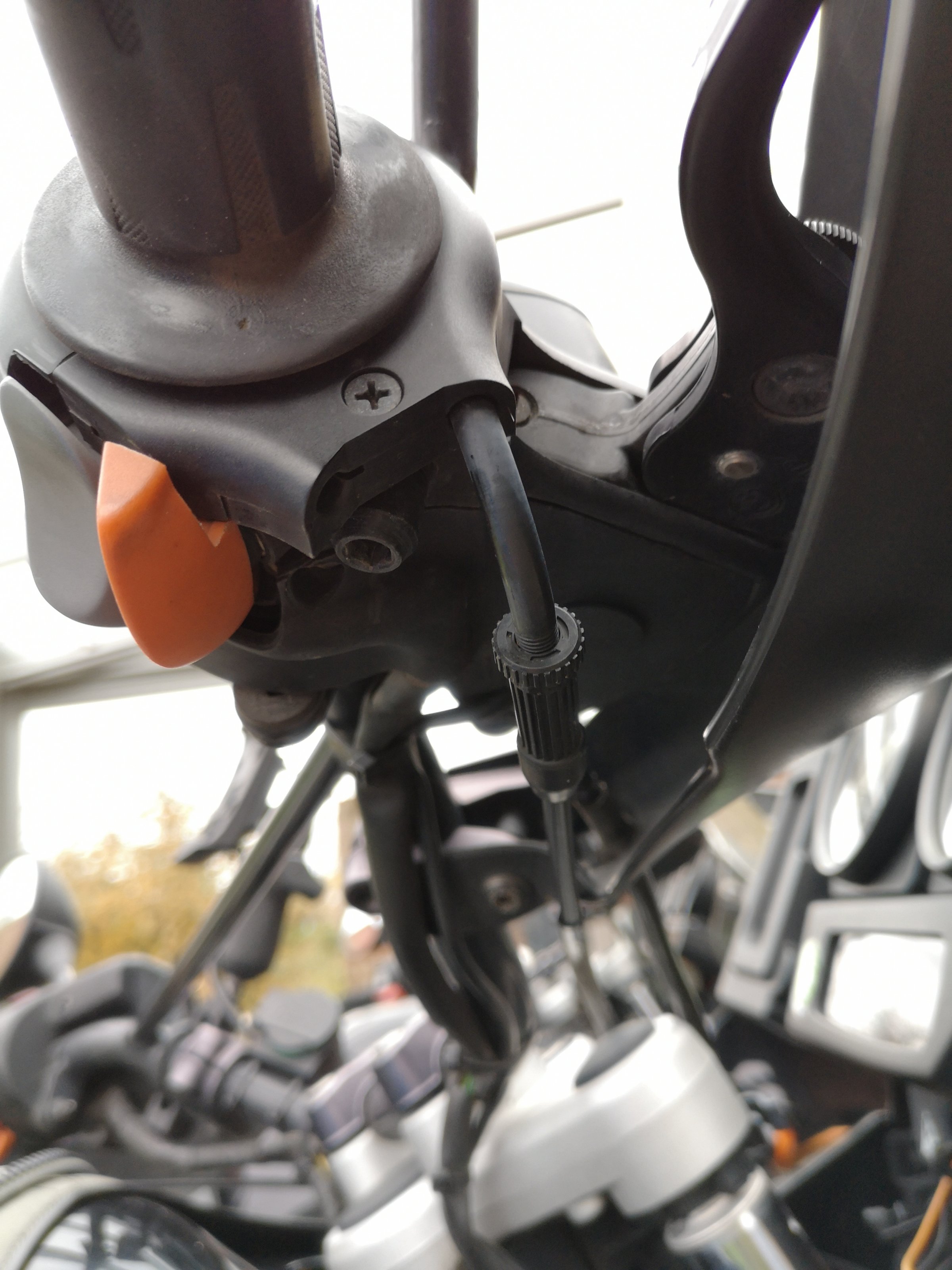 Interessanterweise gibt es in der Gaszugführung einen zweiten Seilzugkanal (rot). Dort sitzt der "neue" Seilzug perfekt drin - nur dank fehlender Stellschraub-Möglichkeit würde das nichts/wenig geben. "Rückwärts" gasgeben wäre aber auch mal interessant