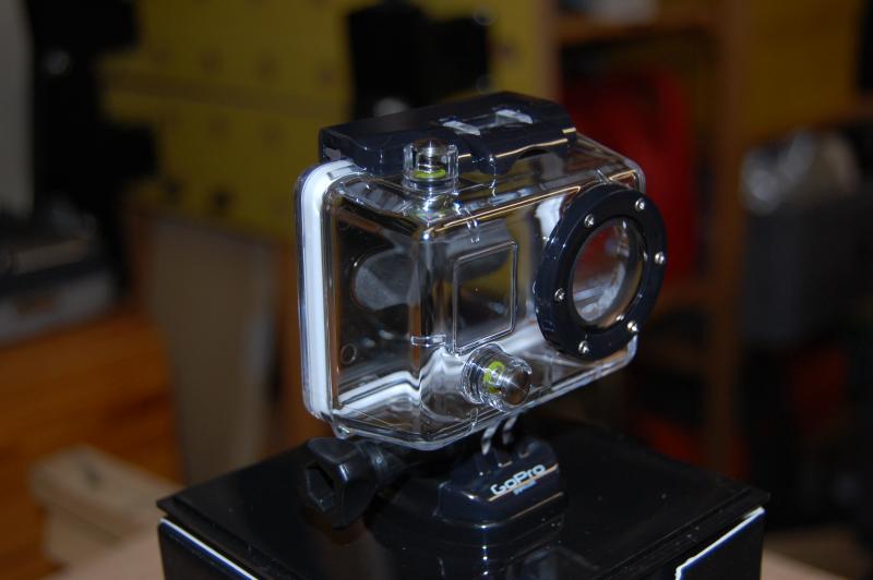 ich habe hier ein neues und noch nicht aus der Verpackung entferntes wasserdichtes Gehäuse für eine GoPro-Kamera.