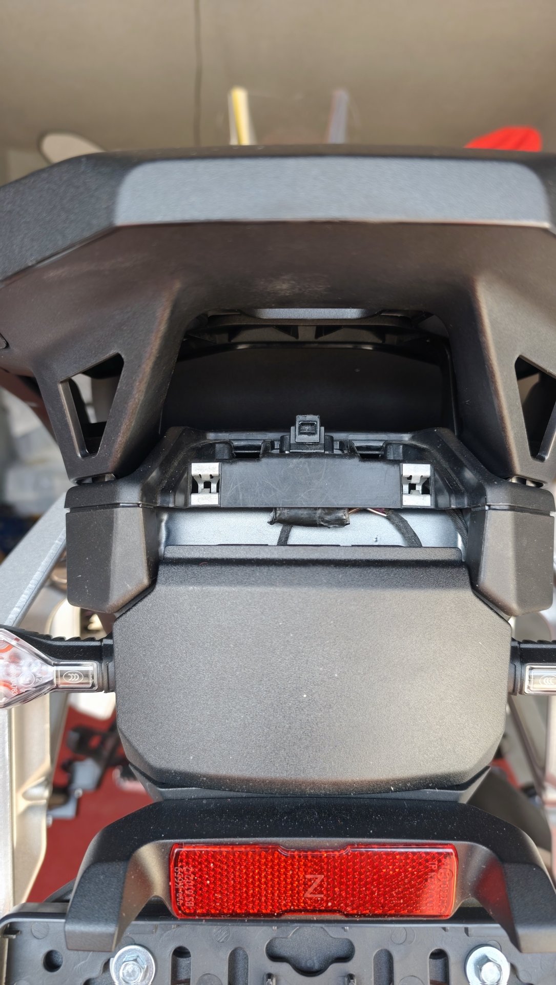 DA ich ohne Topcase fahre habe ich meine Gepäckbrücke auf ohne Topcasebefestigung umgebaut.